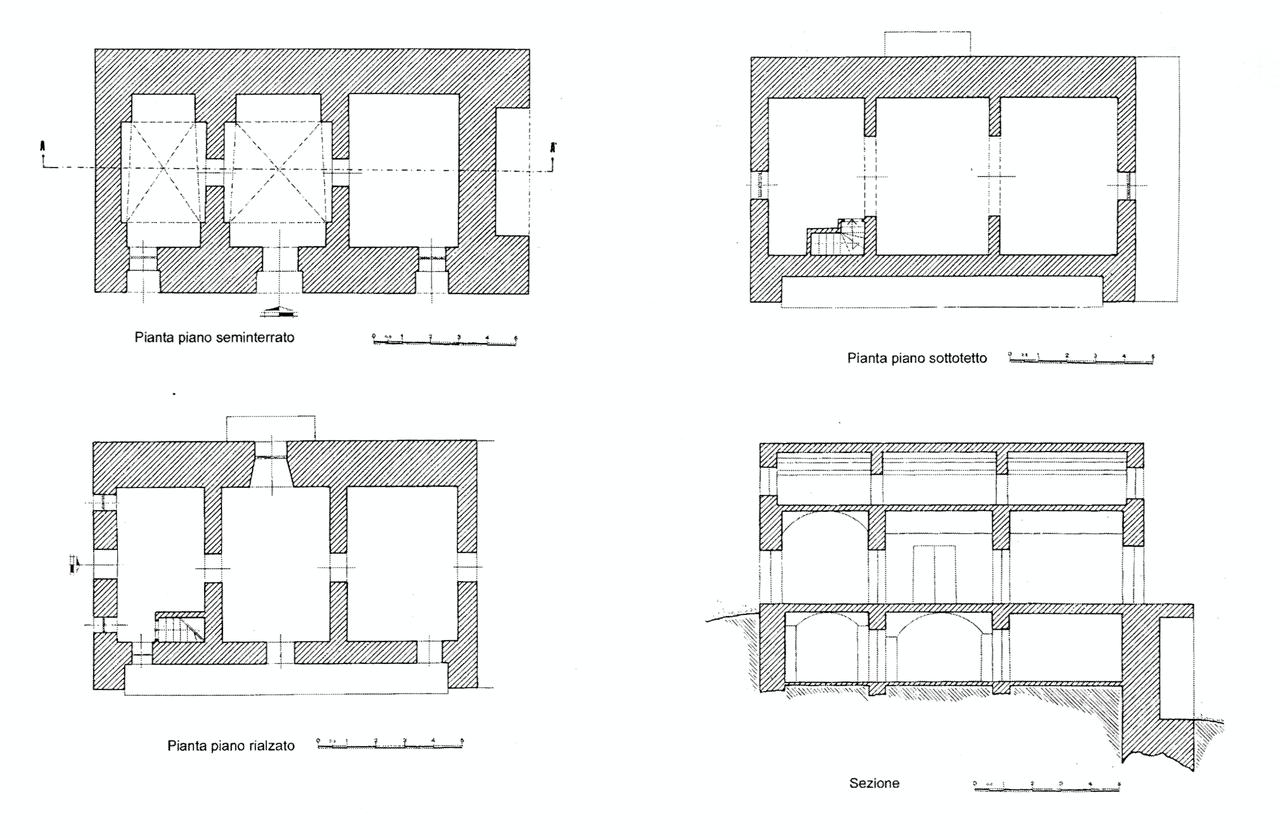 L'edificio, che è compreso in un gruppo di case sparse, sorge su un terreno in lieve pendio ed è inserito in una macchia di alberi. La costruzione è a blocco semplice con pianta rettangolare. È caratterizzata da due facciate una di monte ed una di valle di forma rettangolare con la parte superiore sporgente rispetto al corpo longitudinale. Costituita da tre livelli presenta al piano terra i locali deposito, oggi stalle, ed il piano residenziale al primo piano oltre ad una grande piccionaia nel sottotetto