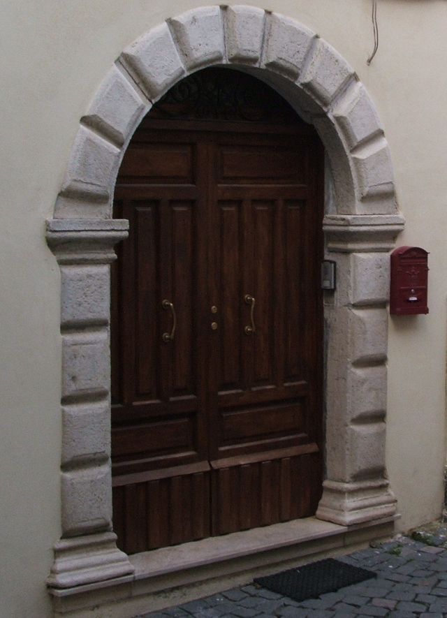 L’edificio, parte di una schiera ha pianta trapezoidale con struttura portante in pietrame intonacato e si sviluppa su quattro livelli di piano, di cui due seminterrati. La copertura è a due falde. La facciata principale su Via Piazza Grande è caratterizzata da due portali ad arco a tutto sesto, uno con lavorazione a bugnato rustico, l'altro con cornici modanate. Il cornicione è "a romanelle" di laterizio intonacate