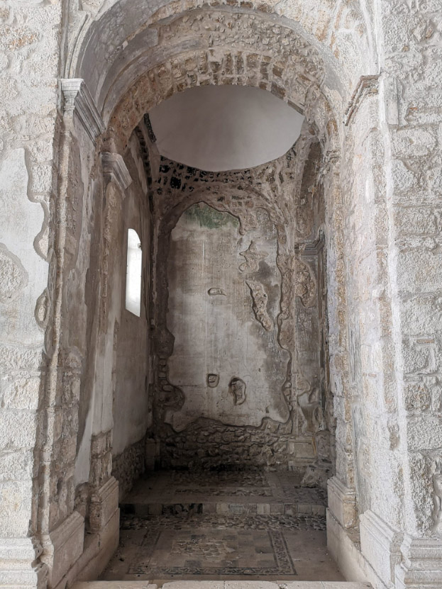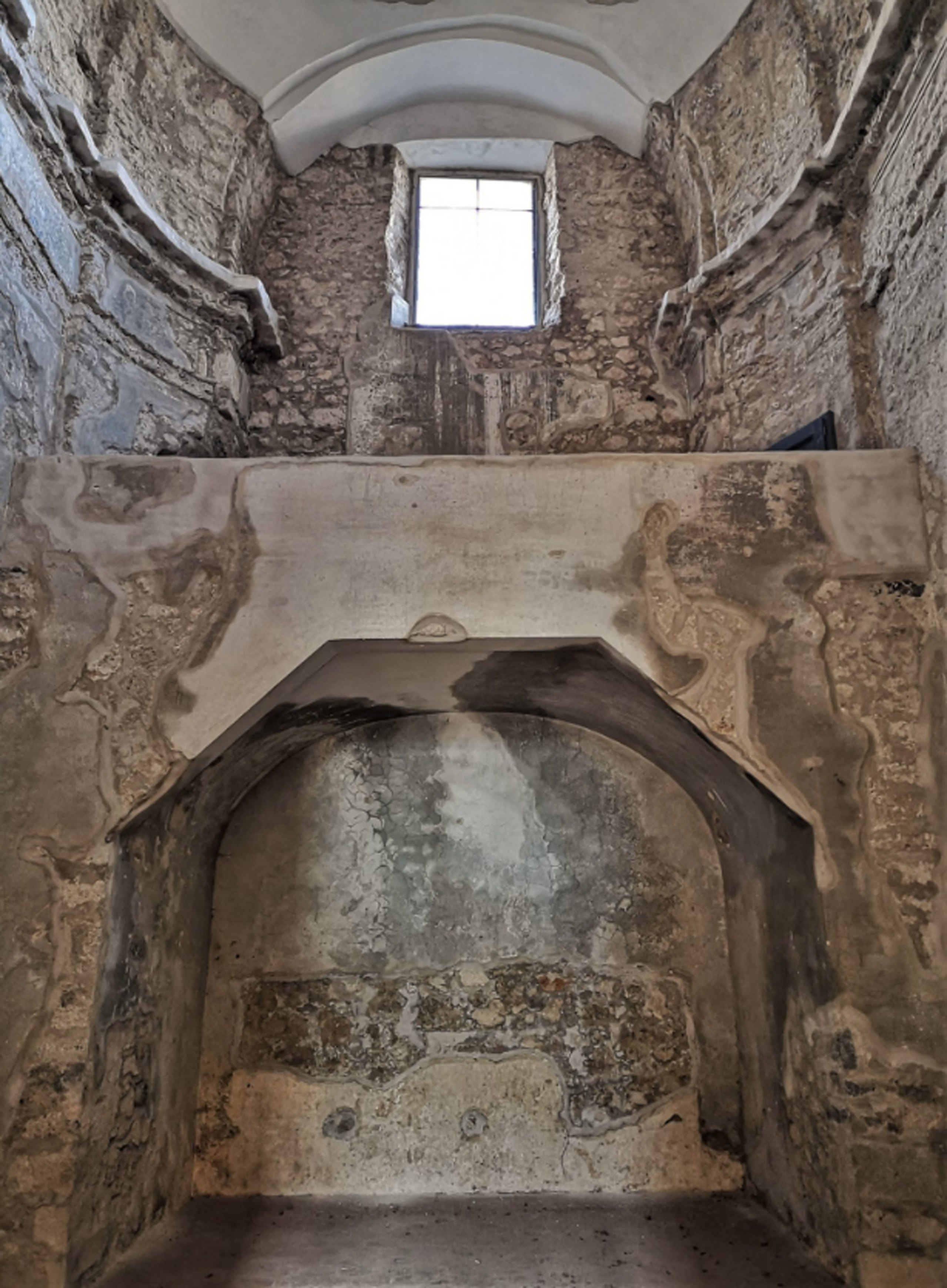 La costruzione a croce latina di dimensioni 25,00 m di lunghezza, 15,00 metri circa di larghezza, e 10 ,00 metri di altezza e a tre navate con la struttura costituita da murature archi e volte