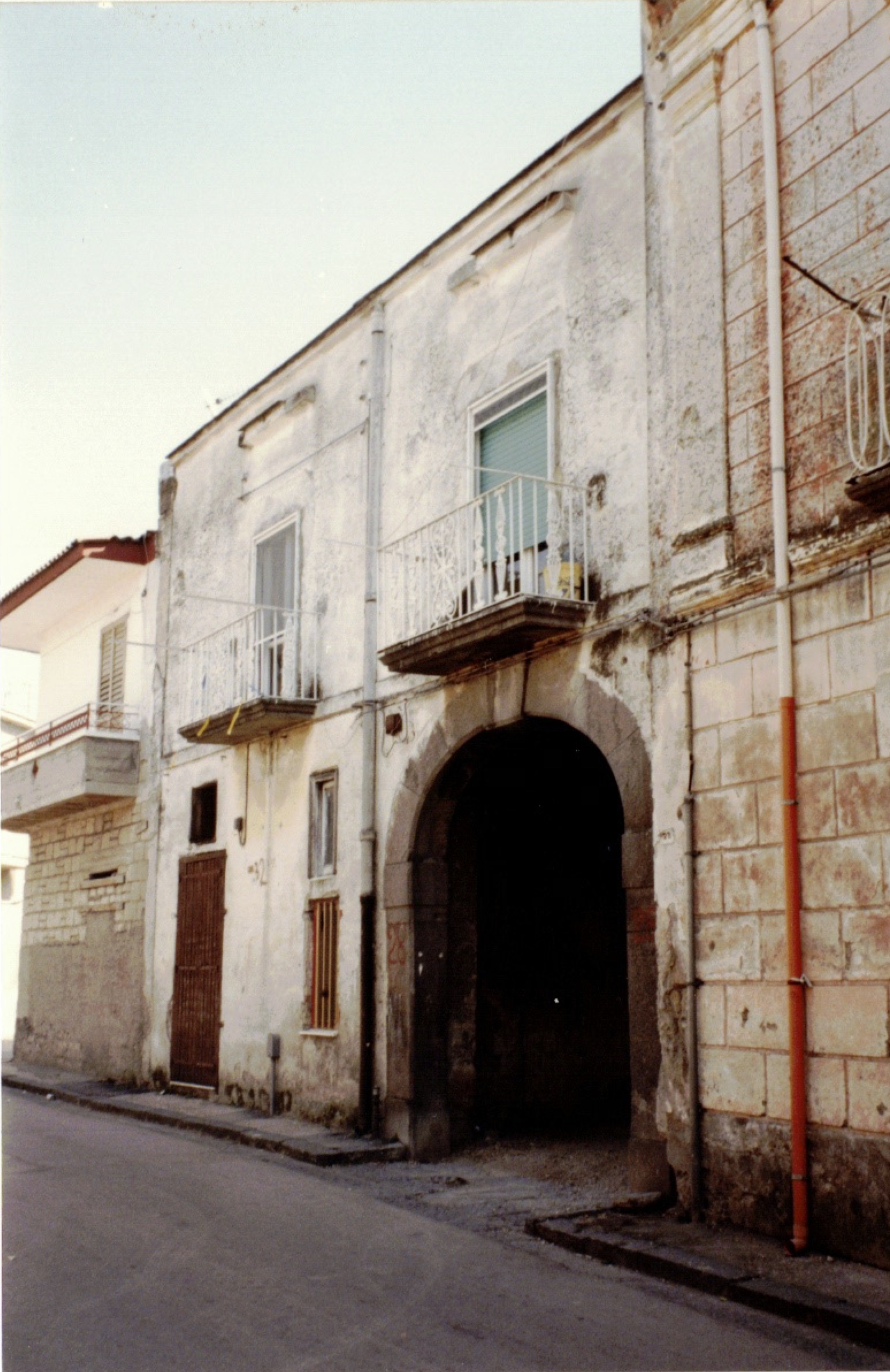Il volume della casa con pianta a forma di "L" è costituito da un piano terra dove si collocano i locali di servizio ed un primo piano adibito a residenza. Entrando dall'ingresso principale si giunge in un cortile interno che è in comune con il palazzo che lo affianca sulla destra. La struttura muraria è realizzata in blocchi di tufo, rivestiti con intonaco liscio. Il prospetto è caratterizzato dall'ampio portale in piperno e dalle sporgenze dei due balconi su mensole. La copertura è piana con manto di lapillo lapideo vesuviano, mescolato con calce e pozzolana.