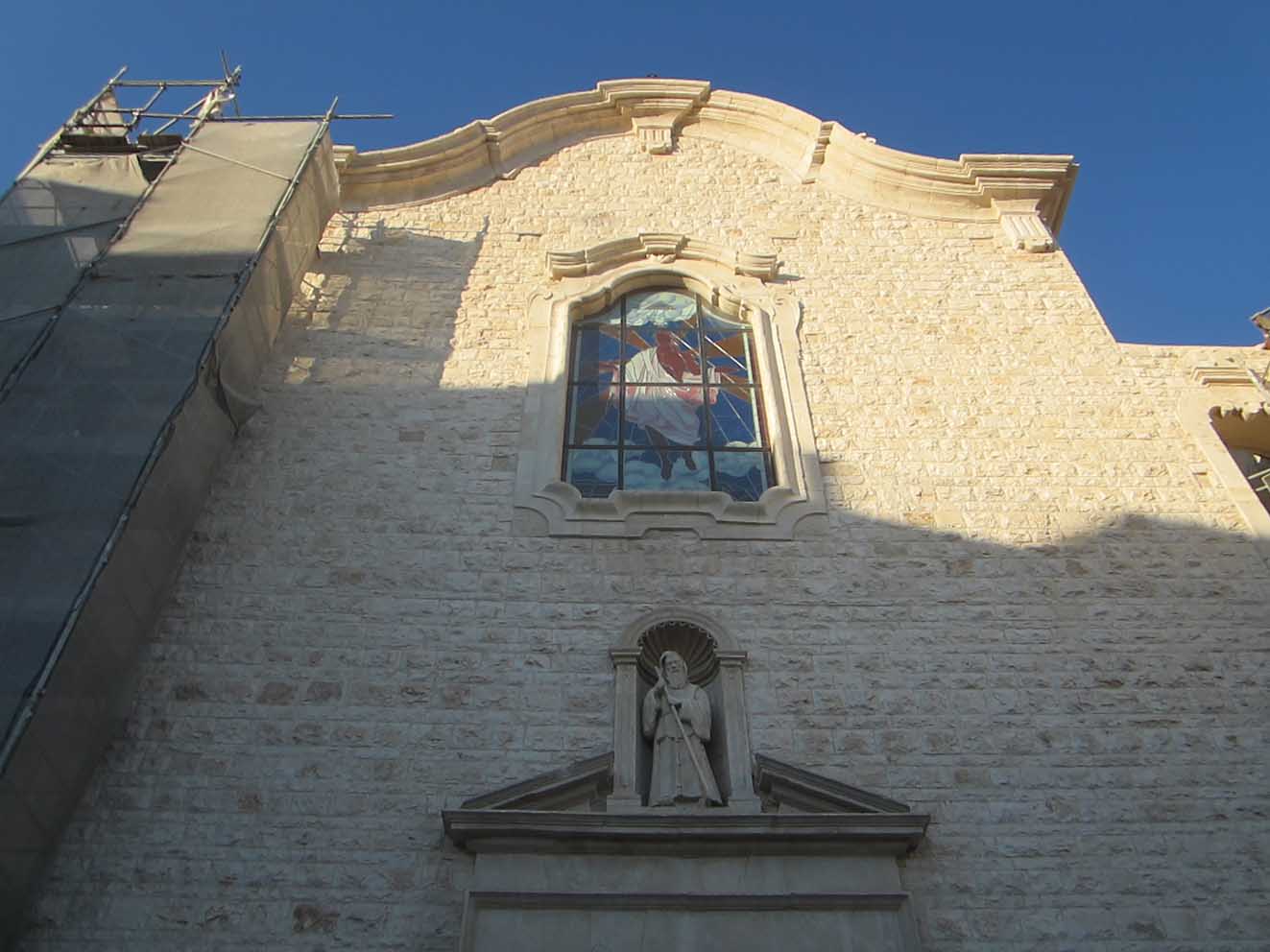 Schema planimetrico a pianta rettangolare, a navata unica con presbiterio. La navata è scandita in sei campate da archi a tutto sesto e presenta otto cappelle laterali, quattro per ogni fianco, con volte a botte ed altari addossati alle pareti esterne. Su un cornicione modanato che corre lungo tutta la navata è impostata una volta a botte lunettata, divisa in settori da archi a tutto sesto; il presbiterio diviso dalla navata tramite un arco trionfale presenta una volta a padiglione. In controfacciata è posizionata la cantoria. La navata è sormontata da un tetto a due falde, con struttura portante a capriate lignee e manto di tegole marsigliesi. La facciata principale, presenta un paramento in conci di pietra locale, disposti a corsi regolari. Al centro del prospetto si apre il portale d’ingresso, con stipiti lineari e sormontato da un timpano triangolare spezzato al centro del quale una nicchia absidata a conchiglia accoglie la statua in pietra di San Francesco da Paola. In asse con il portale è collocato un finestrone con cornice mistilinea, fastigio barocco e vetrata policroma raffigurante il Cristo risorto. Ai lati sono collocate due monofore con cornice sagomata. Il cornicione è mistilineo e leggermente aggettante rispetto al piano della facciata; al centro è collocata una piccola croce in ferro. Nella parte posteriore, alla sinistra dell’edificio, si eleva la torre campanaria, a pianta quadrangolare e realizzata in pietra locale. E’ scandito da cornici marcapiano in quattro ordini aperti da monofore con arco a tutto sesto, protette da ringhiere in ferro e concluso da un elemento bulbiforme, acroterio e croce. Il pavimento è realizzato con lastre quadrangolari di pietra locale