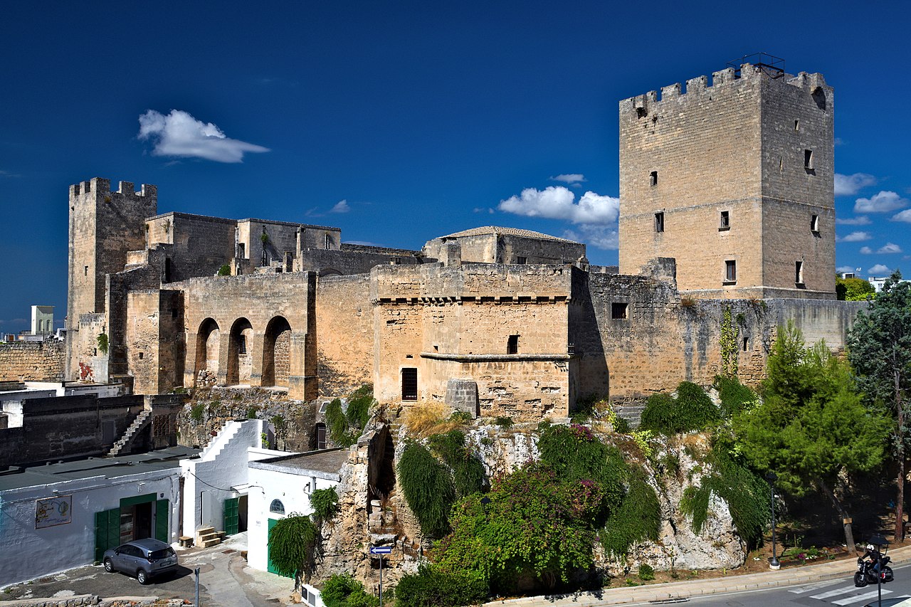 - NOTIZIE STORICO CRITICHE Dal XII sec. tutta l’Italia meridionale è normanna e forma il suo regno sotto i più rigorosi principi del feudalesimo. Grottaglie non fa eccezione. Non conosciamo precisamente l'estensione del casale in questo periodo, tuttavia, l'insediamento "Casale Cryptalearum", doveva coincidere pressappoco con l’attuale centro storico. Sorgeva in un’area che si estendeva tra due solchi vallivi attualmente scomparsi quelli di Sant’Elia e San Giorgio, oggi rispettivamente occupati dalle arterie stradali di Via Ennio - Via Sant’Elia e di Via Crispi, i cui spalti presentano ancora oggi tracce di una frequentazione di età medievale. I dati a disposizione indicano la presenza di un abitato in parte ipogeo in parte subivo, la cui posizione privilegiata dal punto di vista difensivo, ha determinato il successo del casale negli ultimi secoli del medioevo. Da un diploma di Ruggero I del 1133 si rivela che Grottaglie fu ceduta con tutto il territorio dipendente e con i suoi casali di Salete e Misucuro alla mensa arcivescovile di Taranto. In seguito, sotto il dominio degli angioini, i casali limitrofi si aggregarono a Grottaglie per maggiore sicurezza. Sebbene le fonti diventino sensibilmente più copiose a partire dalla conquista normanna, la storiografia, pur con posizioni articolate e differenziate, tende a collocare la nascita dei villaggi rurali del territorio grottagliese, a partire dal X secolo d.C. Grottaglie, sorta così dalla riunione degli abitanti dei casali di Salete, Casalpiccolo, S. Vittore, Termineto e Mannaio, in poco tempo si vide notevolmente ingrandita e quindi per maggior sicurezza, sentì la necessità di fortificarsi e di conseguenza costruire una cinta muraria a difesa della città. A partire dal XIV secolo infatti il casale inizia ad assumere un volto urbano: non si conosce la datazione precisa della cinta muraria, ma la fase di fortificazione è da inquadrare nel più ampio contesto dei lavori promossi da Giacomo d’Atri (1354-1381). Il Castello Episcopio inizialmente doveva essere una semplice residenza di campagna dei vescovi tarantini, una tipica masseria-fortezza, così comune in Puglia a quei tempi. In seguito alla fortificazione della città e alla necessità di dotarla di un ampio presidio militare, anche il castello fu ampliato e venne a far parte integrante della cinta muraria. Diventava in questo modo il principale elemento di riferimento di tutto il sistema della fortificazione, vista la sua ubicazione strategica, nel punto più elevato della città, ed essendo munito di una maestosa torre maestra in muratura che funzionava da osservatorio dalla piana sottostante e dei terreni limitrofi a monte. L’ingresso avveniva attraverso tre porte aperte nelle antiche mura: la prima denominata Porta Sant’Angelo situata a nord-ovest dell’abitato, la seconda Porta Sant’Antonio al limite sud-ovest, ed infine la terza, Porta San Giorgio o (Porta Castello), posta a monte dell’abitato, al limite est. Lo sviluppo edilizio della città storica, a partire dal XVI secolo, avvenne entro il circuito murario trecentesco, assumendo la forma di un rettangolo, con il suo asse maggiore disposto da nord-ovest a sud-est. Nel corso del Cinquecento vennero fondati diversi conventi e monasteri: nel 1520 giunsero i frati Carmelitani, seguiti nel 1536 dai Minimi o Paolotti e, qualche anno dopo, dai Cappuccini. I religiosi edificarono conventi e chiese di grandi dimensioni e ricche di opere d'arte, nei quali abitarono frati e monache stimati per cultura e santità di vita. Il XVII secolo conobbe anni di difficoltà sotto la mal tollerata dominazione spagnola. In un clima di disorientamento politico generale si fa strada il nascente fenomeno del brigantaggio; queste vicende accompagnarono la prima espansione urbana "fuori le mura", fino al periodo unitario, a partire dal quale le vicende di Grottaglie si accomunano a quelle di molti centri simili nel Meridione d'Italia