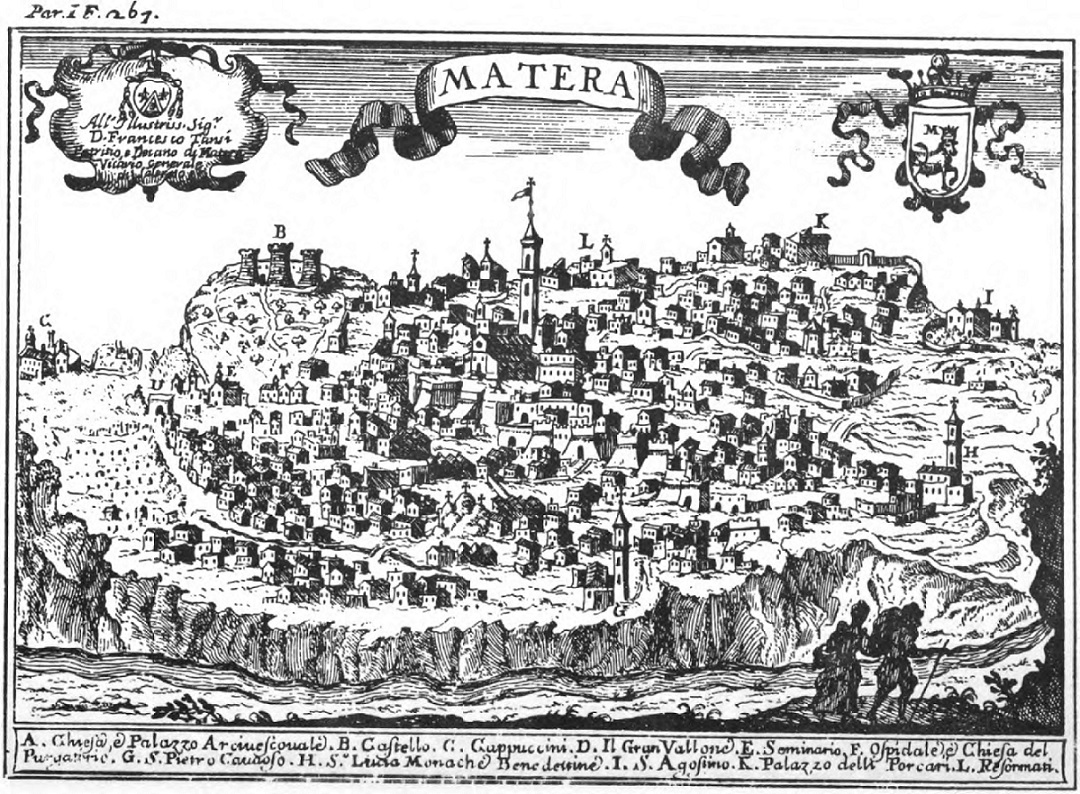 - NOTIZIE STORICO CRITICHE La città della pietra è stata abitata sin dal Paleolitico: alcuni tra i reperti trovati risalgono al XIII millennio a.C. e molte delle case che scendono in profondità nel calcare della gravina, sono state vissute senza interruzione dall'età del bronzo, sino allo sfollamento avvenuto negli anni cinquanta. Importantissima nel periodo di dominazione greca, rimane tale anche sotto i romani per questioni commerciali. Invasa dai Goti, contesa fra Bizantini e Longobardi, distrutta dai Franchi, devastata da Ludovico II ed ancora occupata dai Saraceni alla fine del X sec., Matera risorge dopo il mille sotto il dominio di Bisanzio e dal 1064 è contea normanna. Intorno al X secolo la città si consolida arroccata allo sperone proteso sulla Gravina mentre nelle vallette che l'affiancano (i sassi Barisano e Caveoso) cominciano ad insediarsi i primi nuclei di popolamento. La cinta segue il perimetro della Civita, dominata dalla mole del Castelvecchio risorto ad opera dei Normanni. Le mura si ampliano, poi, con la crescita della città fino a giungere alla torre Metellana. Con i Normanni e gli Svevi l'incremento demografico porta la città ad espandersi oltre le mura; nel XIII secolo, con la nomina della città ad arcidiocesi metropolitana, si inizia a costruire la Cattedrale sul colle della Civita. Nel XV-XVI secolo il rilancio della città è dovuta principalmente ai commerci con i vicini centri pugliesi e, alla fine del XVI sec. la città è quasi interamente costruita. Nel Settecento ed Ottocento la città subisce gli ultimi interventi edilizi ed urbani assumendo il volto ancora oggi visibile. Nel 1902, la visita del Presidente del Consiglio Zanardelli contribuisce a sollevare il problema delle drammatiche condizioni dei Sassi riconosciuti "caratteristici ma antigienici". Con la nomina della città a capoluogo di Provincia viene avviata la costruzione di numerosi nuovi edifici andando ad incidere sui tessuti precedenti e sulla città consolidata. Dalla considerazione dei Sassi come "vergogna da sanare" nata nel 1938, alla consapevolezza del loro valore storico si avvia, dal 1952, il risanamento del centro storico