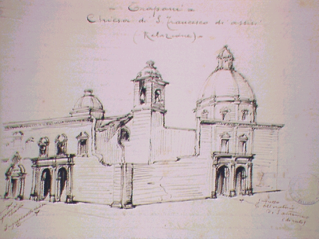 La struttura portante della chiesa di S. Francesco è costituita da paraste che delimitano la nave ed il transetto, sulle quali si impostano le volte reali. Contraffortano la muratura della navata unica una serie di quattro ambienti chiamati "Oratori" che a sua volta fiancheggiano gli ex ingressi laterali della chiesa, e da due torri in facciata. L'incrocio tra la navata è il transetto è racchiuso da quattro pilastri posti ai vertici di un quadrato, sui quali si impostano quattro archi a tutto sesto che sopportano i carichi del tamburo ottagonale sormontato dalla cupola. Il sistema di trasmissione dei carichi degli orizzontamenti alle murature di piedritto è spingente