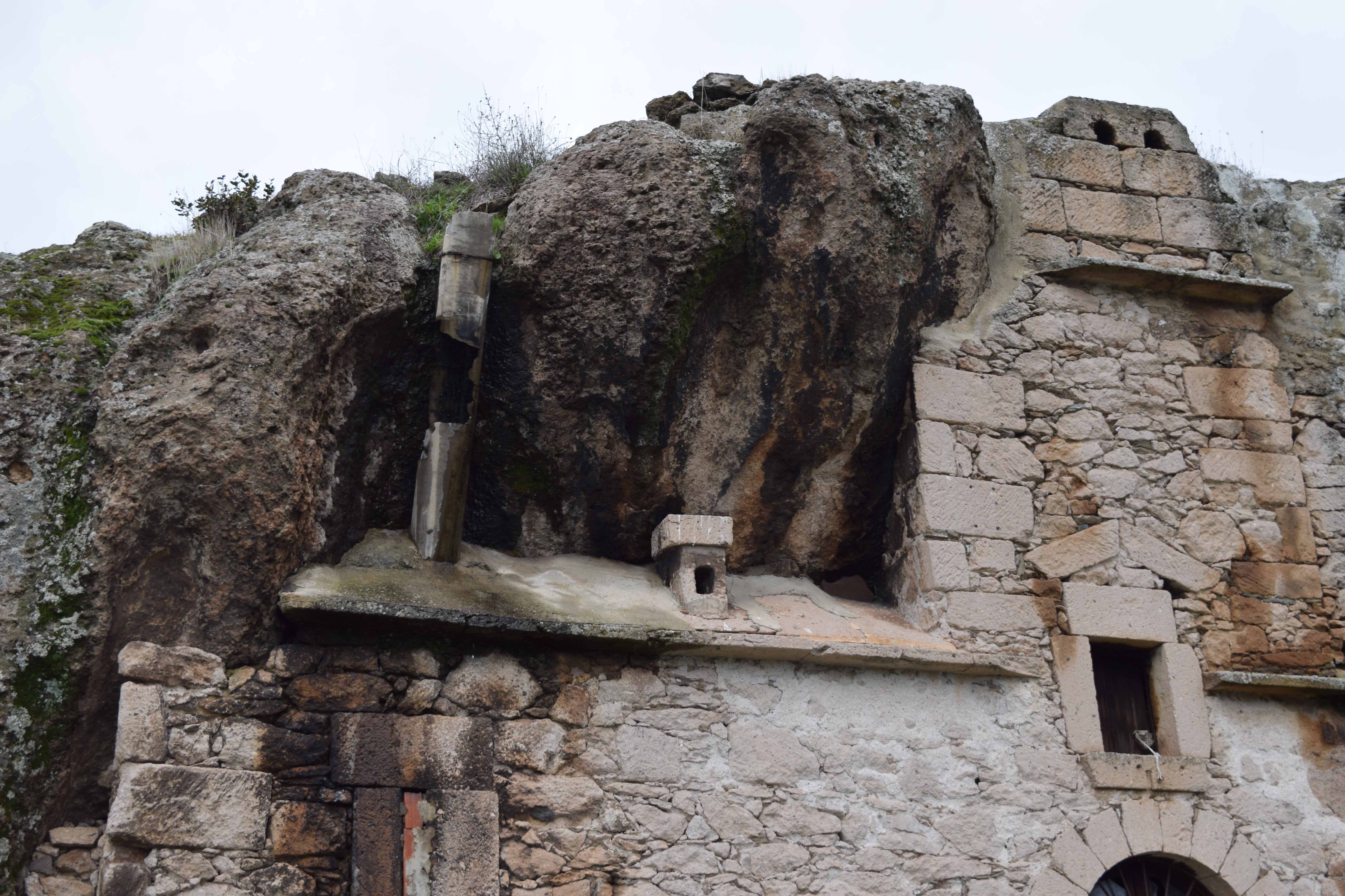 Abitazione rurale ricavata attraverso la chiusura di cavità rocciose esistenti con muri di facciata in pietra squadrata e pietrame irregolare. La parete rocciosa costituisce i tre quarti del perimetro e parte della copertura. La pianta, a struttura lineare, si sviluppa seguendo il profilo della parete rocciosa e si articola in diversi ambientii, l'uno conseguente all'altro. L'altezza dei vani varia a seconda della conformazione della parete rocciosa, arrivando in alcuni punti a due piani di altezza. Il muro di facciata denota una costruzione a più riprese, con l'uso di una tecnologia costruttiva differente nelle sue parti e l'uso di conci squadrati delle dimensioni più svariate