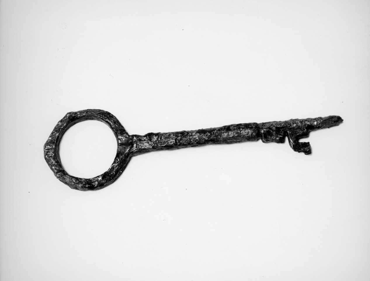 - NOTIZIE STORICO CRITICHE La chiave proviene dagli scavi di Piuro del 1963 e del 1966; fu trattata elettroliticamente presso il Ratisches Museum di Chur/Coira, in seguito all'accordo stipulato nel 1968 tra la Soprintendenza alle Antichità della Lombardia e il museo svizzero. Per qualche notizia, si veda:H. Schneider "Piuro sepolta da una frana nel 1618. Gli scavi di sondaggio del 1963", in "Valtellina e Valchiavenna", n. 6, giugno 1964;G. Scaramellini e altri "La frana di Piuro del 1618. Storia e immagini di una rovina", Piuro 1988;Archivio dell'Associazione Italo-Svizzera per gli Scavi di Piuro, Corrispondenza, 1963-1966