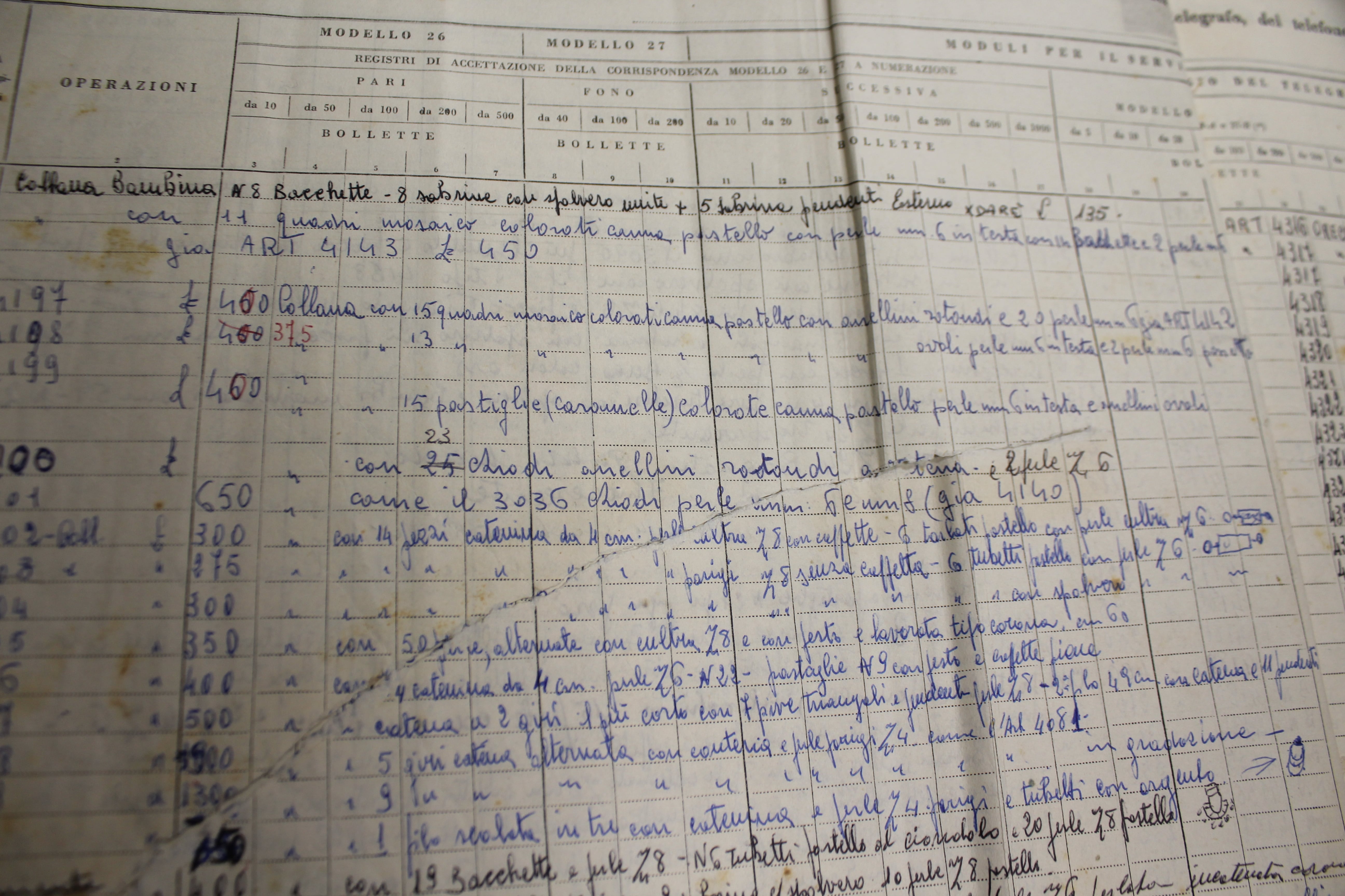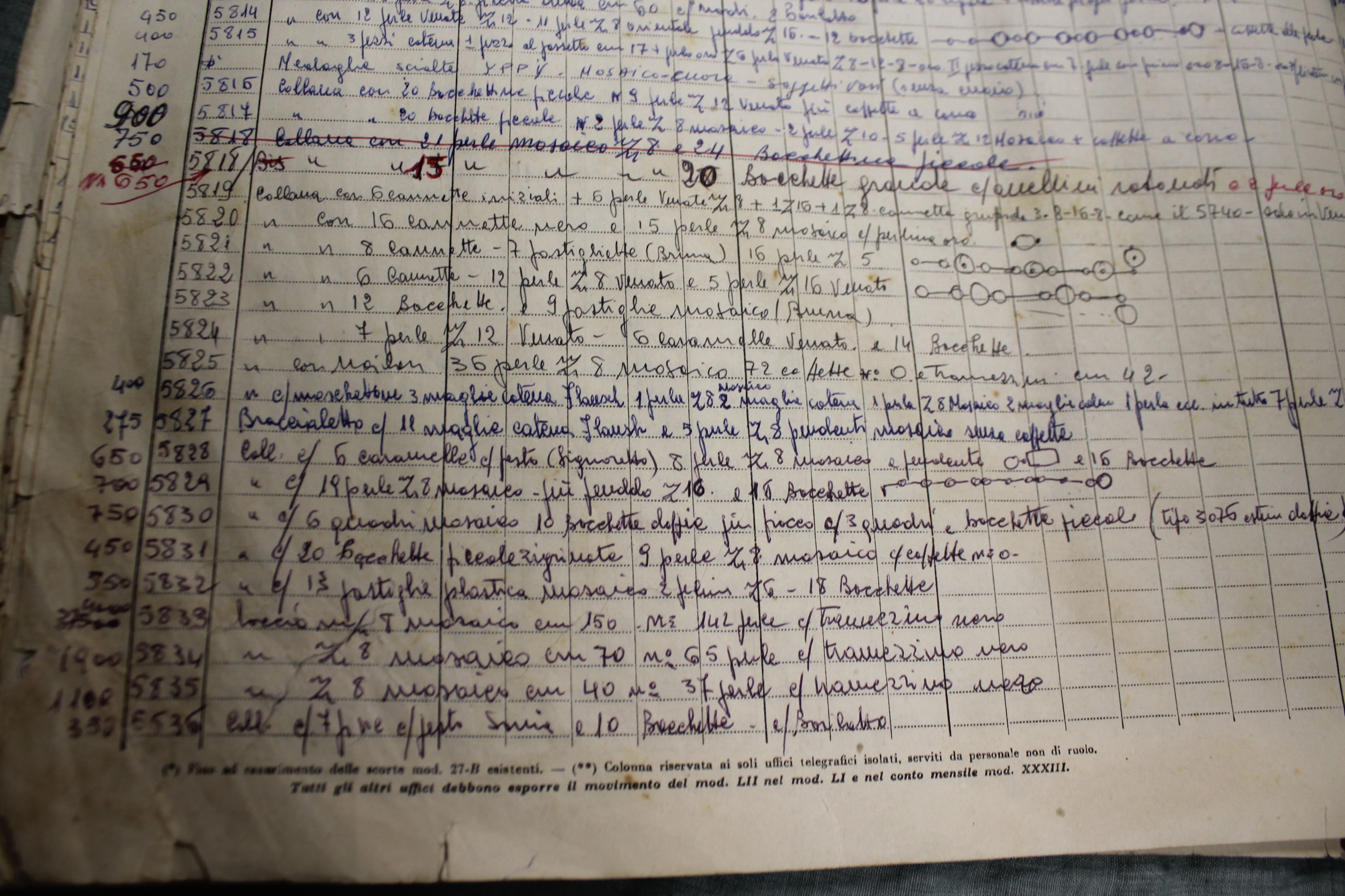 - NOTIZIE STORICO CRITICHE Il bene catalogato è stato scelto come maggiormente rappresentativo, tra una serie di oggetti di affezione presenti nel laboratorio S.U.V. All’interno di un più ampio rinnovamento degli studi inerenti alla cultura materiale, si collocano diverse teorie che riflettono sul rapporto tra soggetto e oggetto, tra materialità e simboli. Per una puntuale catalogazione del bene materiale e per una più esaustiva comprensione del conteso culturale in cui è inserito, si è quindi inclusa l’indagine di come quel particolare bene materiale partecipi attivamente nel processo di sviluppo della soggettività e all’espressione dell’identità familiare. Gli oggetti di affezione, teorizzati da Pietro Clemente, sono cose di uso comune che si caricano di un particolare valore emotivo per il loro rapporto con il passato, con situazioni o con persone specifiche. Le storie incorporate in un preciso oggetto ne determinano il valore, inoltre, nel caso del registro, è evidente anche il suo ruolo nella costruzione di una continuità verticale con i predecessori: ogni angolo della ditta, e molti oggetti che contiene, rimandano ad aneddoti e memorie condivise. Il registro iniziato da Oscar Sito è definito dai familiari: “la nostra Bibbia”. La scelta del termine non è affatto casuale. Questo paragone riflette l’enorme considerazione che ripongono nell’oggetto divenuto segno tangibile della loro storia, guida a cui rivolgersi e da cui trarre ispirazione. Il registro possiede una sua autorevolezza, i familiari vi si approcciano con rispetto. L’oggetto ne porta i segni tangibili: le pagine sono aggiustate, più volte, sgualcite, sbiadite non solo dal normale trascorrere del tempo, ma dalle tante volte in cui è stato consultato, accarezzato, sfogliato per alimentare il legame. Rappresenta uno stimolo a raccontare non solo le tipologie di perle e di monili realizzati nel tempo dal laboratorio, ma a ricordare i propri antenati, le loro parole, il loro spirito, il loro lavoro. Parlando del registro, le persone trasmettono dettagli sulle pratiche, sulla divisione dei compiti, sui ritmi di lavoro all’interno del laboratorio come, ad esempio, l’operazione di selezione dei calibri delle perle con il #tamiso#. Un determinato numero di articolo porta a dettagliare l’organizzazione e le dotazioni strumentali dei vari reparti come l’attività di smaltare le perle, i #bagni alle perle#, in uso nei primi anni. Altre pagine sono lo stimolo per raccontare la proverbiale precisione maniacale di Oscar. Il registro è come un ancora di emozioni e ricordi legati a Oscar, e fornisce il la per ulteriori livelli di narrazione da parte del figlio Salvatore sul suo rapporto con le perle di vetro. Emerge, ad esempio, come fin da bambino fosse stato stimolato dal padre, che gli dava delle perle da tenere in tasca, a toccare, osservare, leggere, amare le perle di vetro (DEI MELONI 2015)
