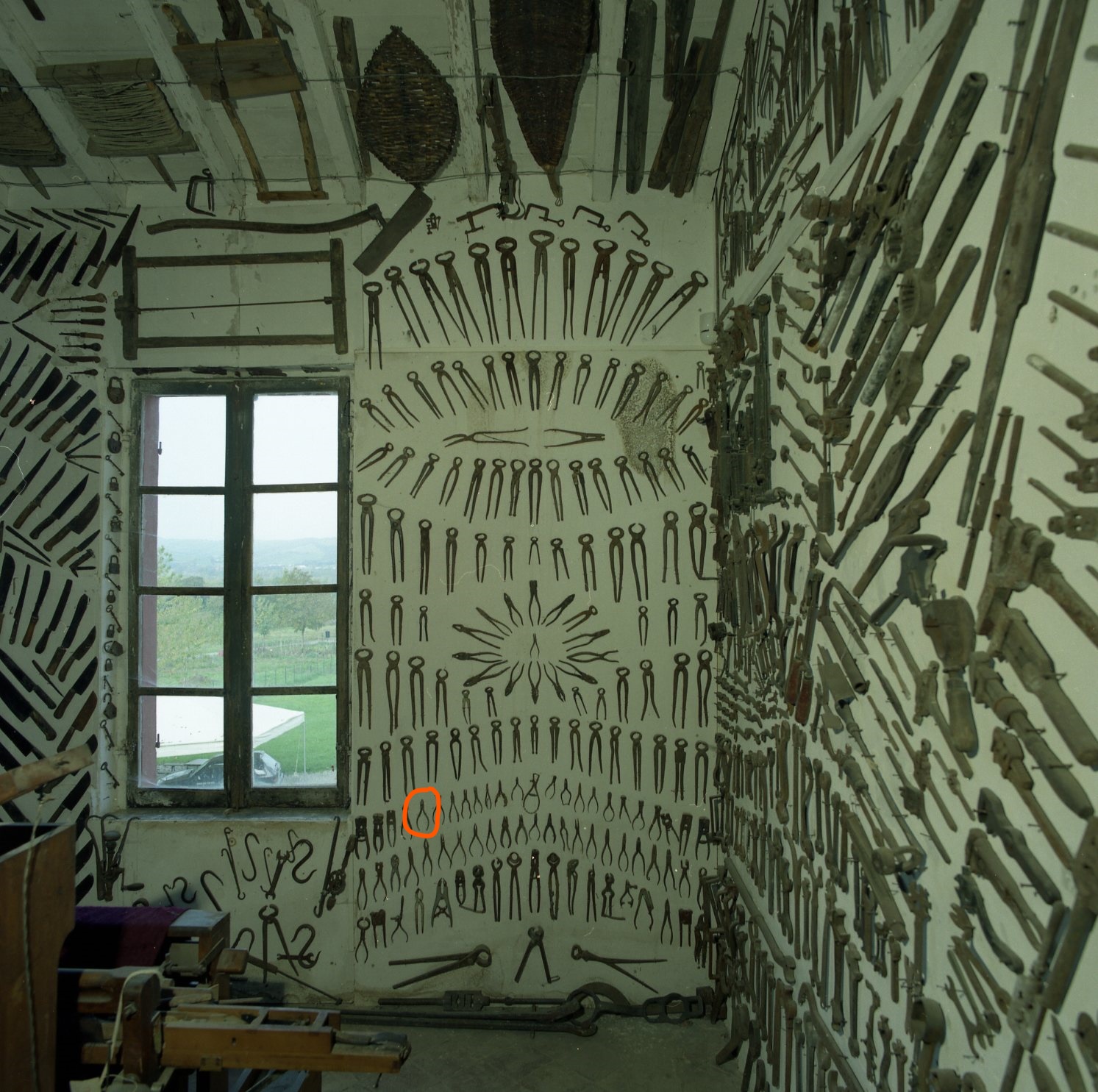 Meccanismo a due leve costituito da due manici e due ganasce robuste e molto arcuate tanto da lasciare tra loro solo una minima luce. Le ganasce sono munite di taglienti orizzontali, verticali o obliqui. Spesso il meccanismo presenta più di un fulcro, ossia le due leve possono articolarsi in uno o più punti. L'insieme forma, con altri oggetti, le file nona e decima all'alto è e costituito, partendo da sinistra, nella nona fila, dai pezzi che vanno dal primo al quinto, dall'ottavo, decimo, quattordicesimo e quindicesimo, dal diciassettesimo al diciottesimo, dal ventesimo al ventitreesimo. Infine dal primo della decima fila