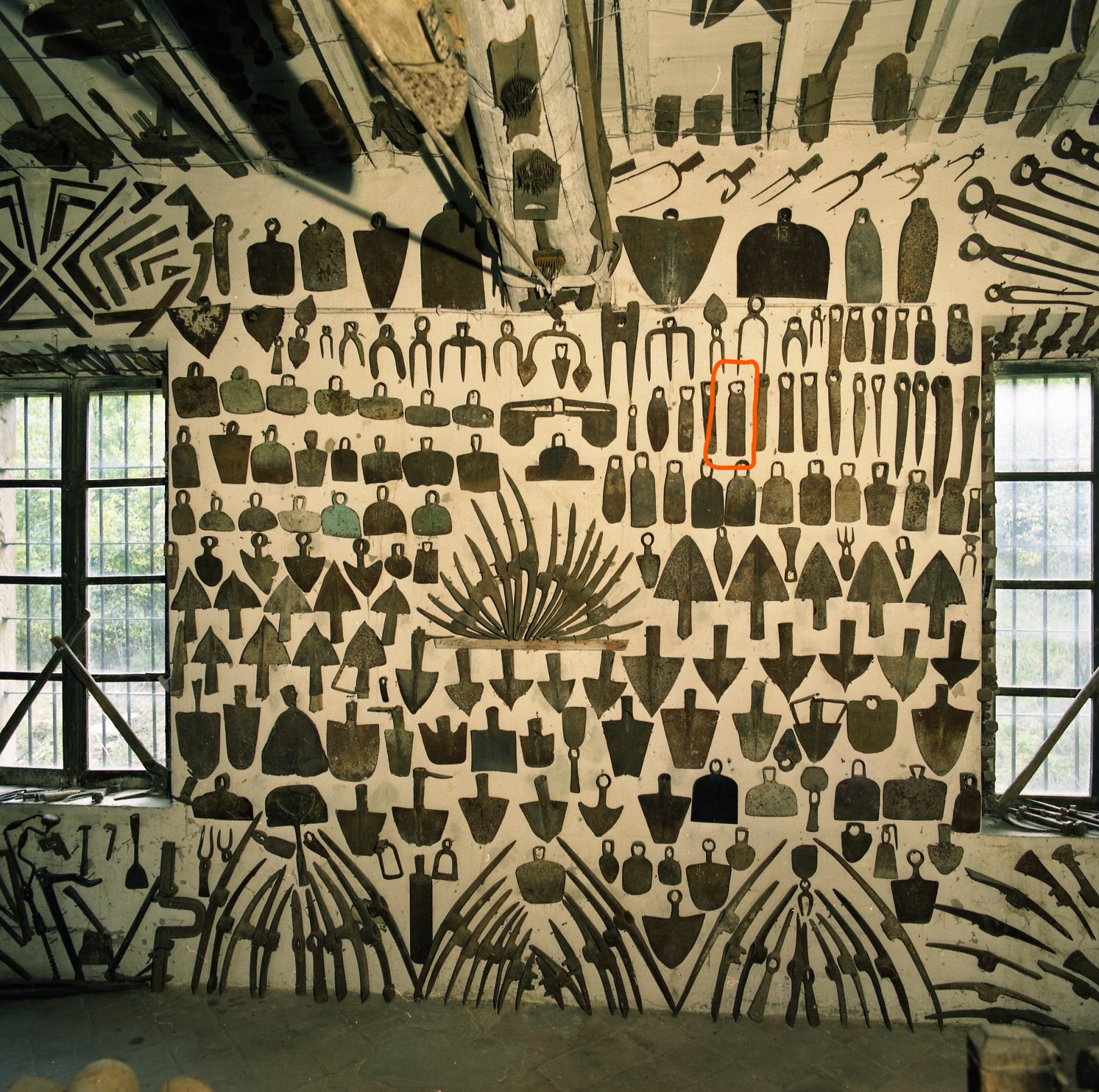 Zappe simili "con manico corto ma massiccio, sono molto diffuse nell'Italia centrale" (Scheuermeier). Scrive Guatelli: "è la parete degli attrezzi da terra: zappe, vanghe, badili, picconi,