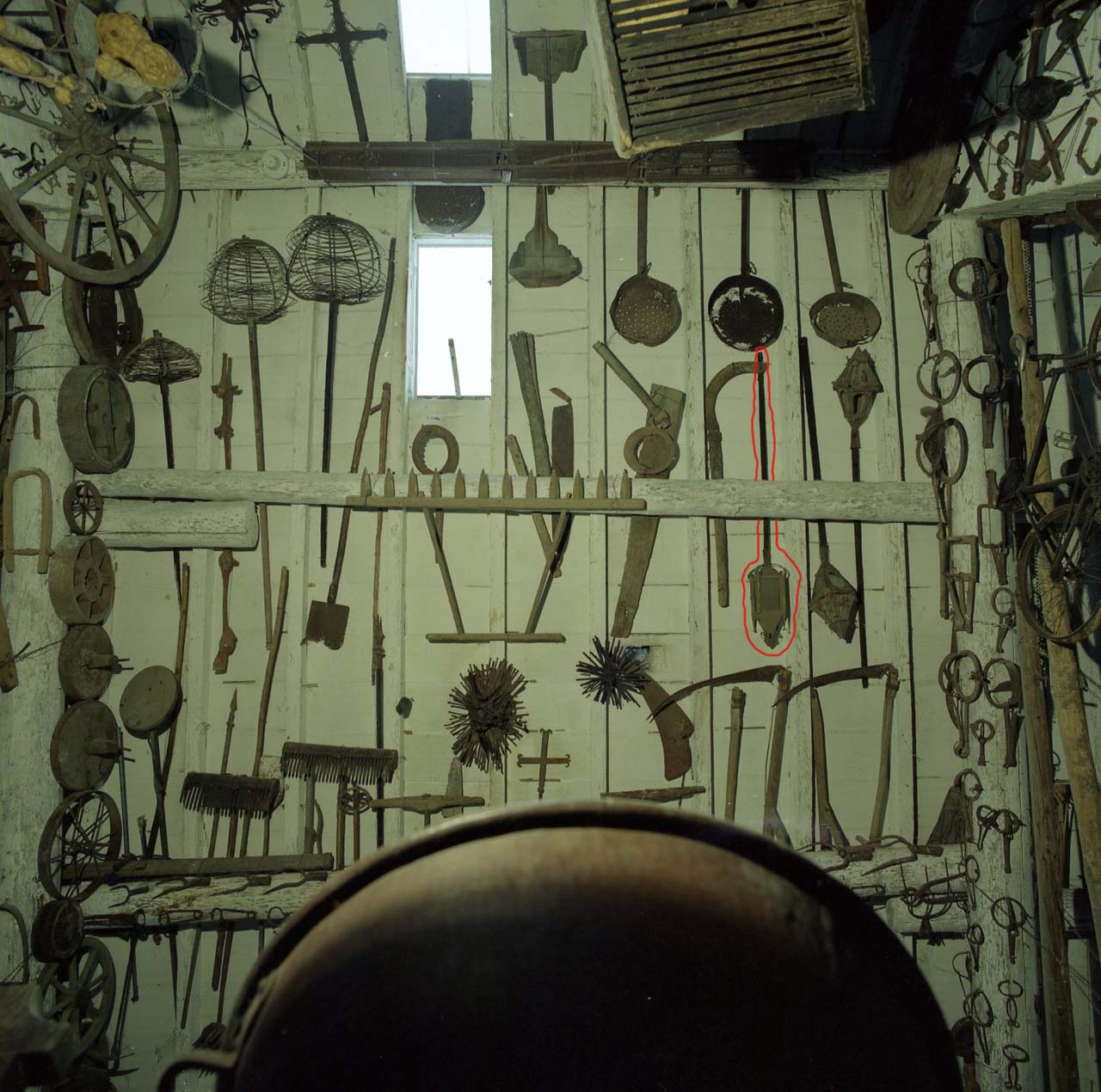 Cassetta rettangolariforme o romboidale arricchita da motivi decorativi e montata su di un manico. Disposte tra i travicelli del tetto, affiancate, diritte o capovolte, e a ridosso dell'arcareccio