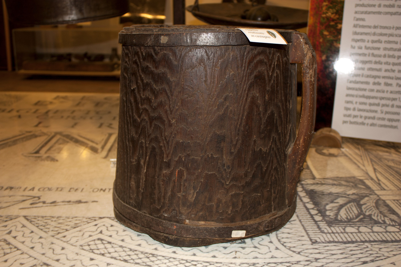 - FUNZIONE E MODALITÀ D'USO serviva per misurareSappiamo che servivano per misurare i prodotti e che questi contenitori erano quasi sempre in legno di castagno con l'aggiunta di un manico e del fondo. I marroni affumicati che prendevano il nome di "cucciaroli o di "cuciazrò, sono stati venduti secondo questa misurazione, cioè alla staia, fino alla loro produzione nel 1950. Questa corrispondeva a circa 18 kg. All'interno del museo esistono anche oggetti serventi alle altre misurazioni, cioè il quarto (circa 4.500 kg) e la coppola (1.100 kg). Fonte: POLI 2004, p. 31
