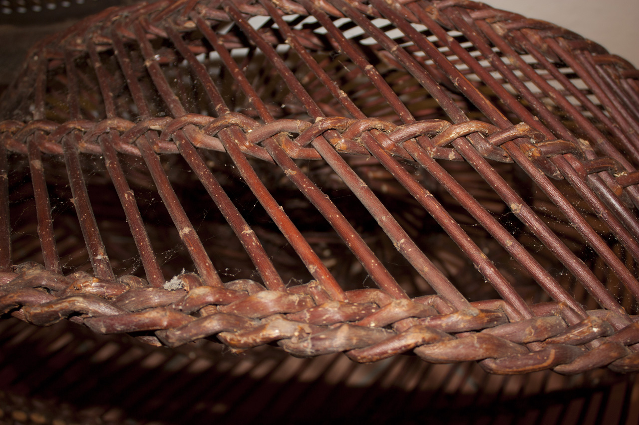 Realizzata in legno intrecciato, spessa e robusta con maglie larghe. Di forma ellittica