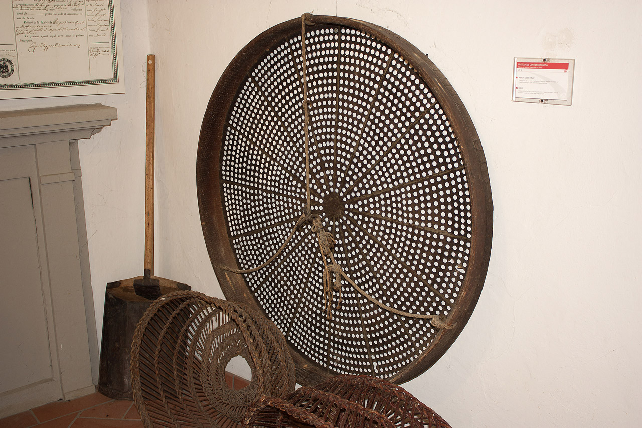 - FUNZIONE E MODALITÀ D'USO dagli anni 1930/1950 veniva utilizzato per vagliare e selezionare le castagne secche prima della selezione manuale. Precedentemente era usato, invece, per selezionare e pulire alcune erbe medichePer selezionare e pulire le erbe mediche veniva montato su un treppiedi e manovrato da un uomo