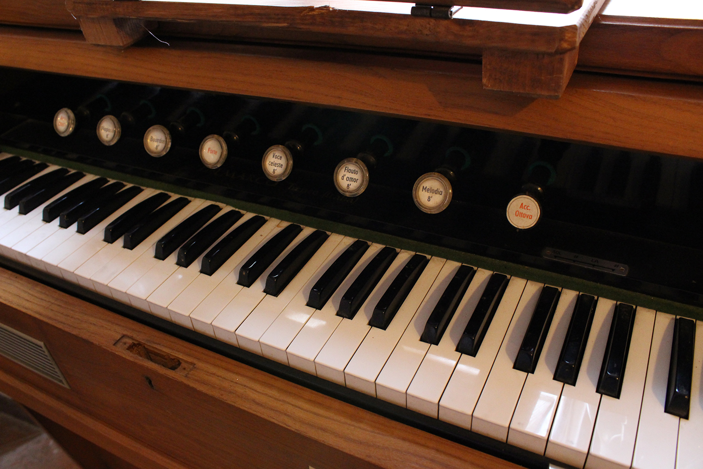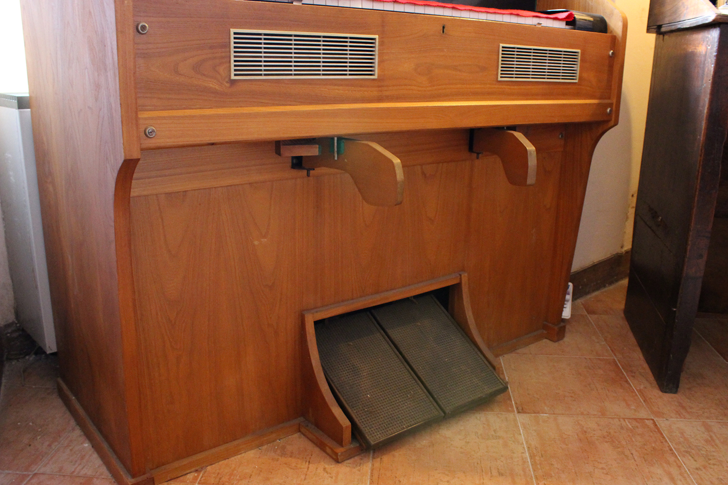 - FUNZIONE E MODALITÀ D'USO musicaleLa tastiera (#manuale#) apre e chiude gli alloggiamenti delle ance che sono messe in vibrazione dall’aria introdotta dal mantice, azionato da due pedali