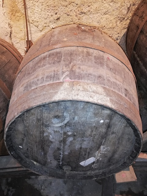Recipiente ligneo di forma cilindrica a parete convessa e limitato da due piani circolari opposti (fondi). È costituito da doghe lievemente arcuate a sezione trapezoidale, mantenute aderenti da 6 cerchi metallici (di cui uno mancante). È provvisto di foro circolare superiore (cocchiume) e di foro anteriore (spina) presso il bordo del fondo anteriore