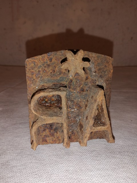 Sbarra di ferro a sezione circolare che presenta nella parte distale, su una base quasi rettangolare, un monogramma composto dalle lettere “A” ed “R” sormontate da una piccola stella