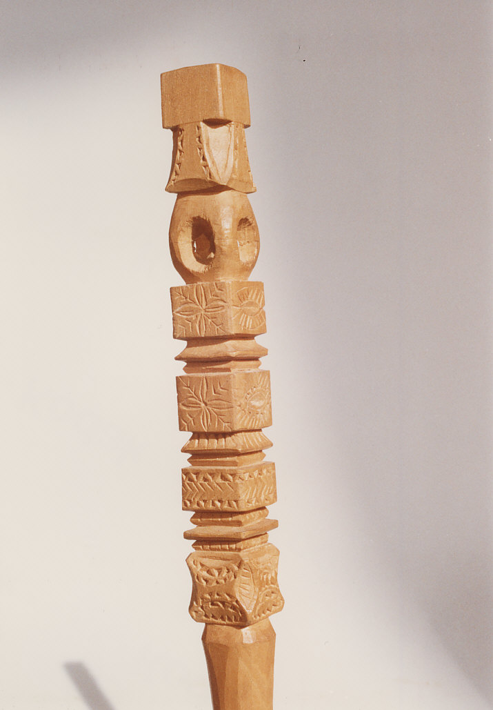 Bastoncino cilindrico con parte superiore sagomata, decorata ad intaglio e provvista di un foro