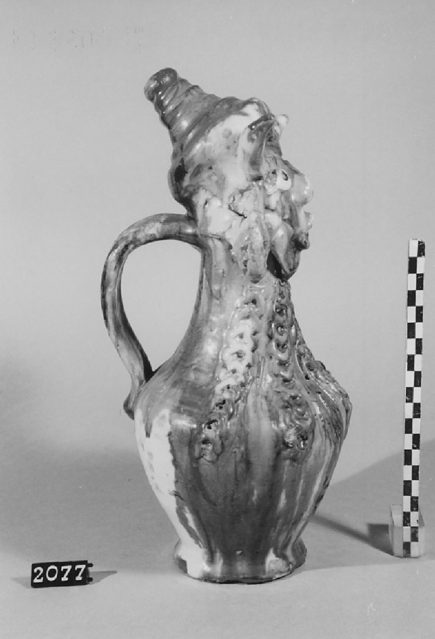 Recipiente con corpo ovoide, ansa a nastro verticale e maschera posta in sommità