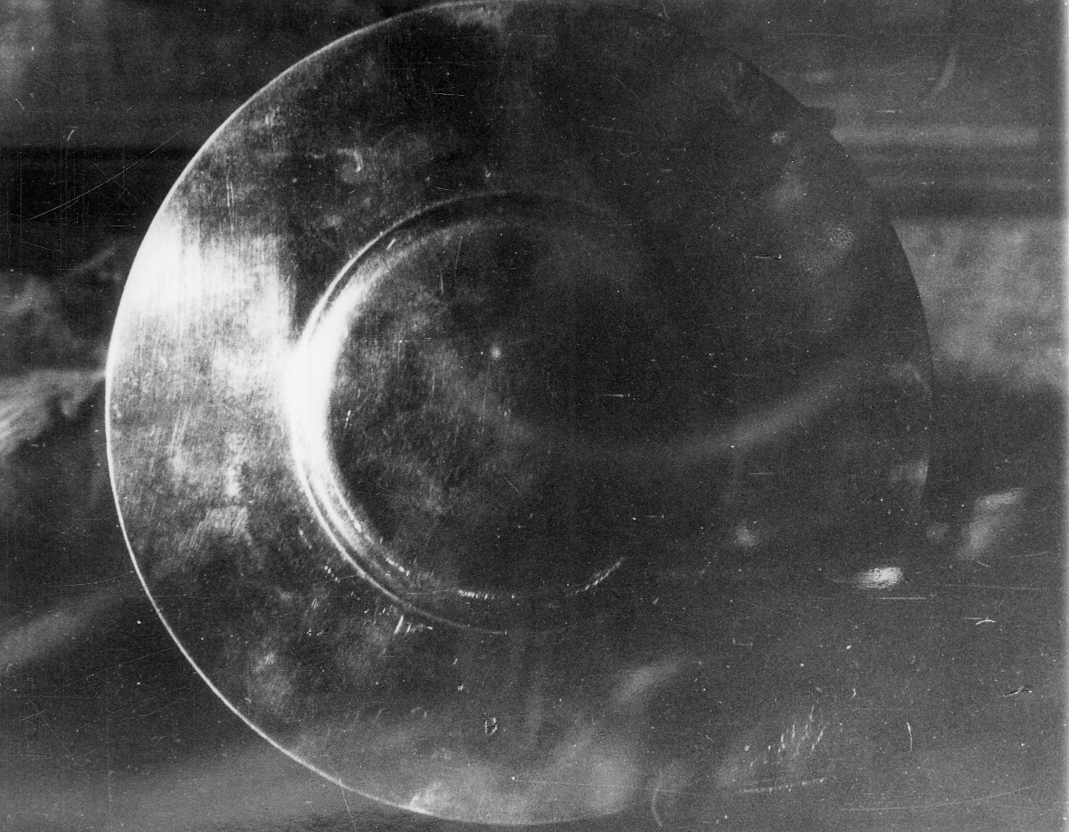 Patena di forma circolare in cui l'inserzione del cavo centrale sul disco di bordo è segnata da un netto rilievo