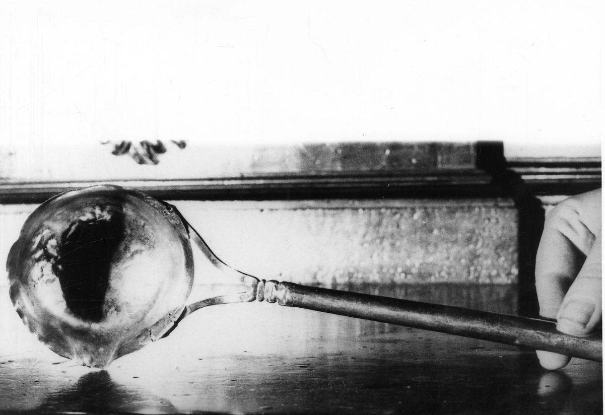 Mestolo battesimale in cui è evidente la saldatura tra il manico e la forcella che regge la coppa del mestolo, avvalorando l'ipotesi della sostituzione del manico