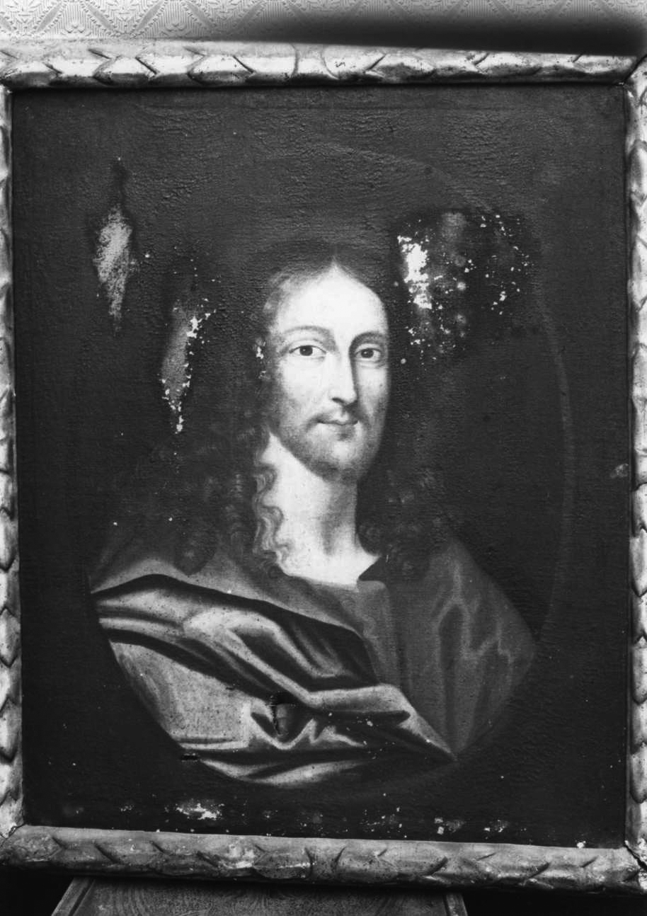 Il dipinto, di forma rettangolare, presenta al centro un ovale entro il quale è dipinto il volto di Gesù Cristo: egli ha i capelli mossi che scendono fino alle spalle e rivolge lo sguardo verso lo spettatore. Indossa un manto drappeggiato sulle spalle. Cornice in legno dorato con motovi di foglie lanceolate ricorrenti
