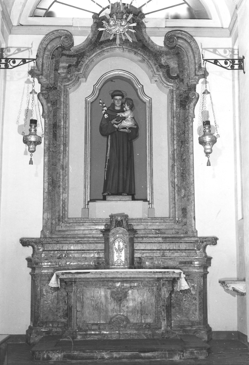 - NOTIZIE STORICO CRITICHE L'altare non è documentato in quanto non esiste più un archivio della chiesa. Si può soltanto dedurre che fosse nato per avere una tela e non la statua di Sant'Antonio come è attualmente. Infatti vi sono notizie pubblicate da Bussi comprovanti l'esistenza nella chiesa di altri altari con quadri, quale, ad esempio, un altare eseguito da Stefano Albuzio di Clivio dedicato a San Giovanni e un quadro del 1768 di Ignazio Nepote, raffigurante "San Giovanni, Sant'Anna, il Bambino Gesù e il beato Amedeo" (BUSSI V., La parrocchia di San Bernardo a Vercelli, in Miscellanea, Vercelli 1970, pp. 11-12)