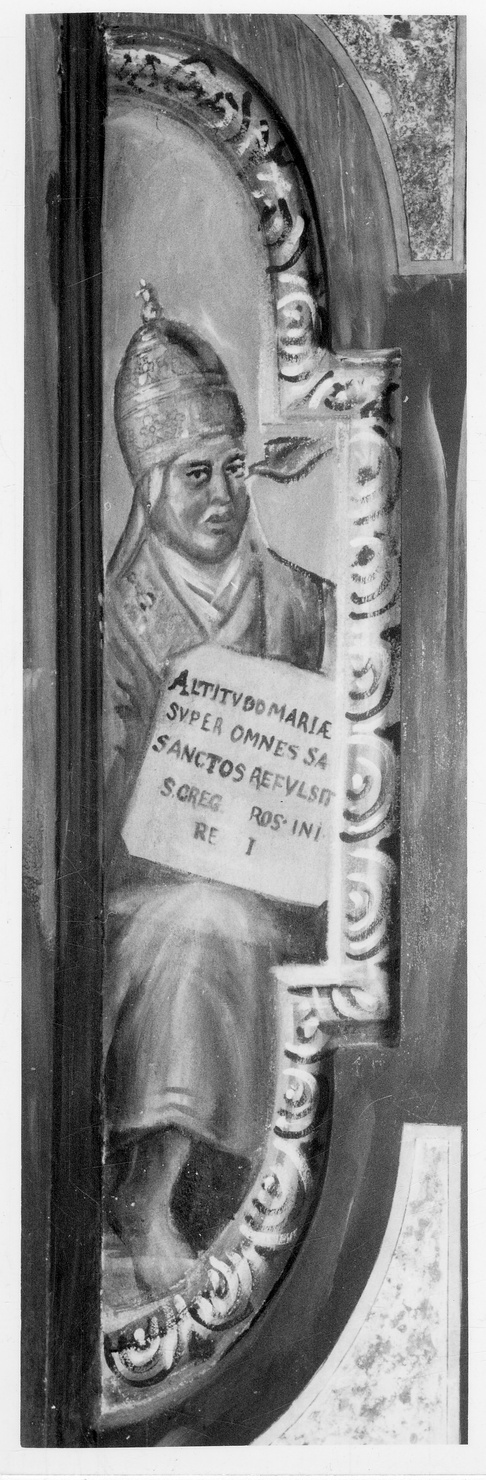 - ISCRIZIONI Sulla tavola - ALTITUDO MARIAE/ SUPER OMNES SA/ SANCTOS REFUKSIT/ S. GREG. ROS. INI/ RE I - lettere capitali - a pennello - latino