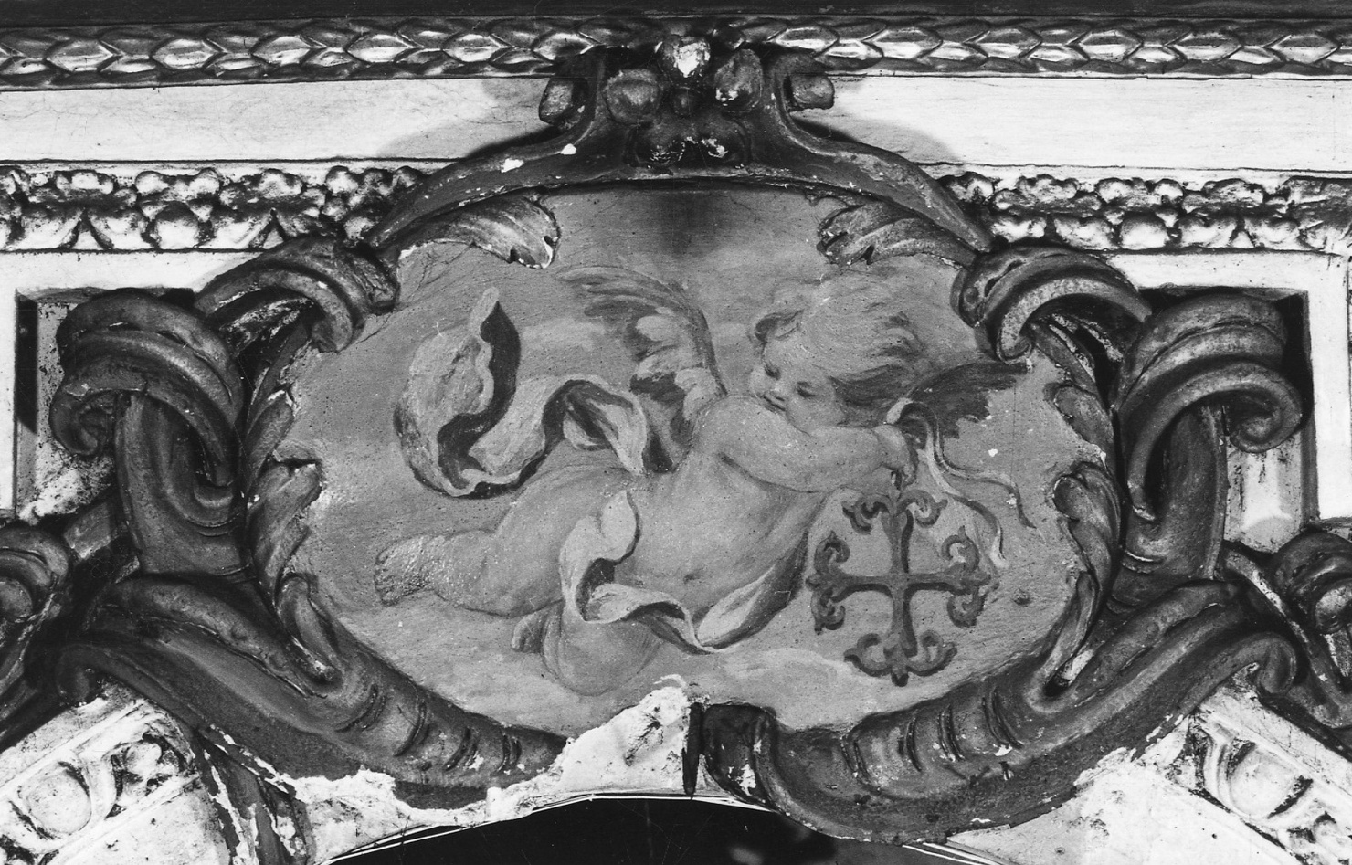 - NOTIZIE STORICO CRITICHE Come per gli altri tre angeli dipinti ad affresco, anche questo risulta un modesto lavoro decorativo dai colori distesi con leggerezza e vivacità. E' probabilmente opera di un decoratore attivo verso la fine del'600, poco dopo la conclusione dei lavori in stucco di Pietro Sommasso, alquanto pregevoli. Tracce di fuoco nella parte superiore non hanno danneggiato nè l'affresco, nè la cornice