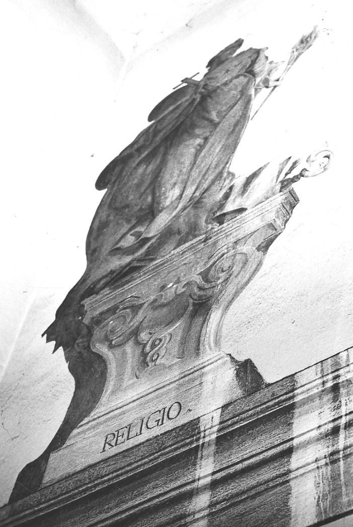 - NOTIZIE STORICO CRITICHE Mancano dati certi sull'esecuzione dei dipinti, sicuramente realizzati in occasione dei rifacimenti della cattedrale a fine Settecento, quando furono costruiti i nuovi altari di S. Lorenzo e S. Agabio. IN questo periodo fu costruita con tutta probabilità anche la scala di accesso all'archivio capitolare a cui fu data la nuova entrata dall'interno della basilica. Non conosciamo la primitiva funzione dell'ambiente di accesso all'archivio, dove sono dipinte le quattro figure in oggetto. Non compaiono comunque dai libri del Capitolo notizie sulle quattro Virtù che seguono nella rappresentazione l'iconografia tradizionale come indicato nel manuale settecentesco del Ripa (C. Ripa, Iconologia, Roma 1593)