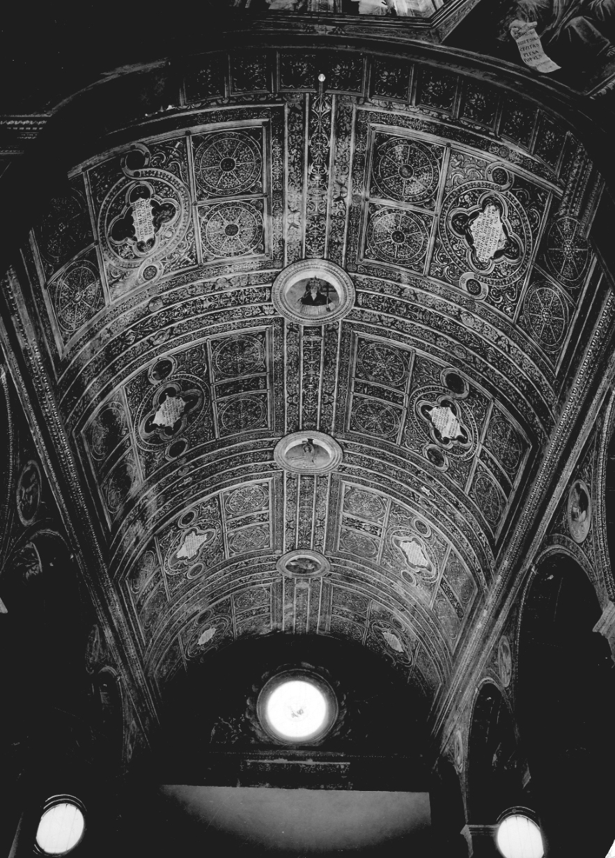 - ISCRIZIONI volta, entro finta formella quadrilobata - QUI HOC TE(M)PLUM BENEFICIA IUSTE DEPRECATURI/ INGREDIUNTUR CUNCTA SE IMPETRASSE LETENTUR. Traduzione: Coloro che entrano in questo tempio per impetrare grazie secondo giustizia si rallegreranno per avere ottenuto tutto - lettere capitali - a pennello -