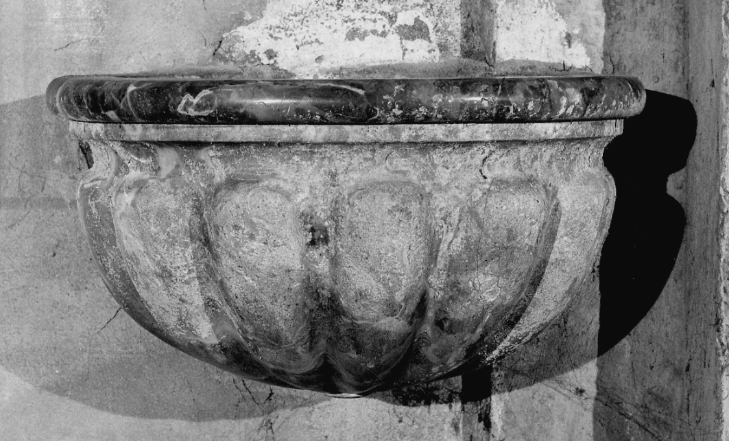 acquasantiera da parete, opera isolata di Vassallo Giuseppe (metà sec. XVIII)