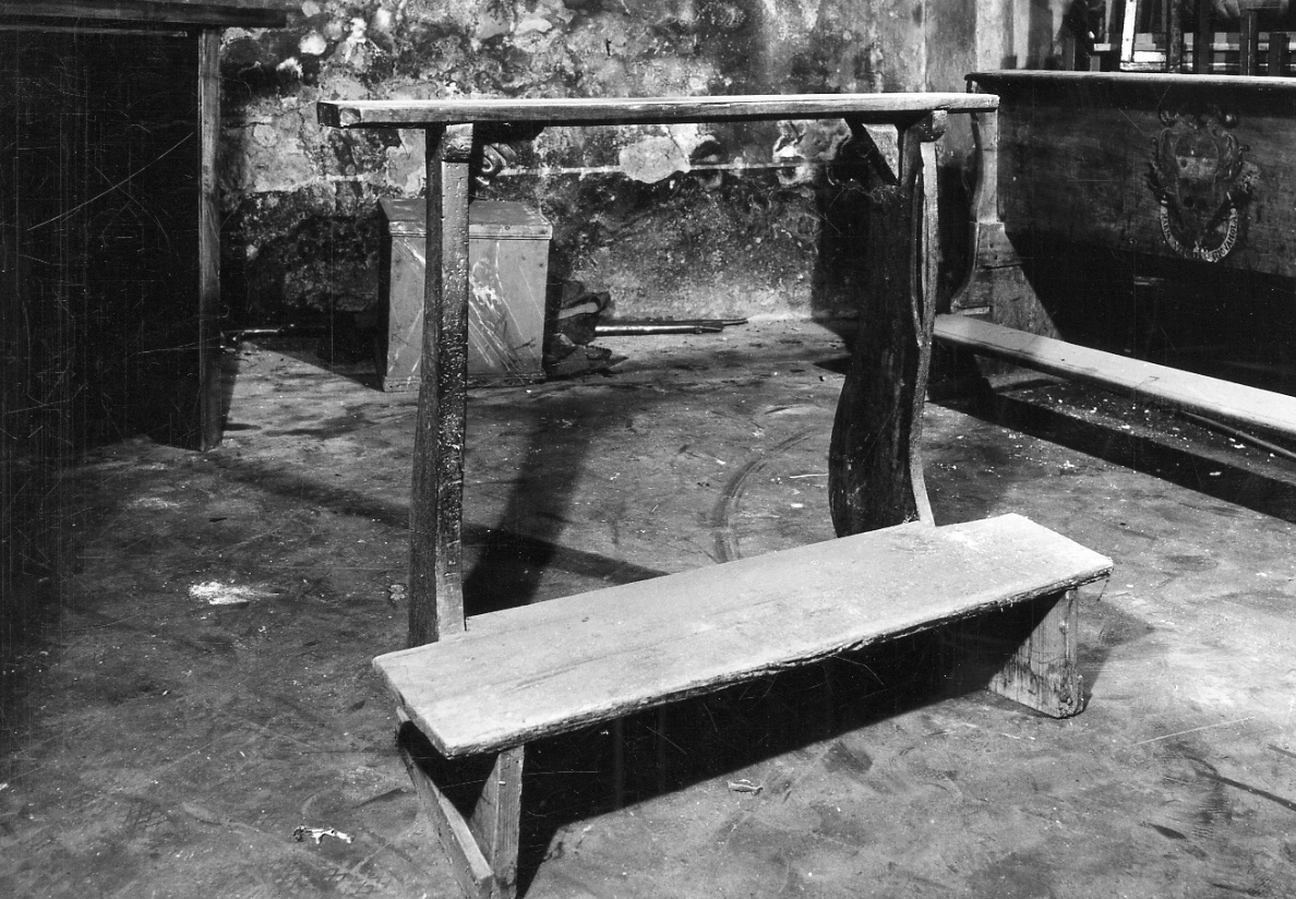 - NOTIZIE STORICO CRITICHE Opera riferibile ad una produzione seriale, l'inginocchiatoio trova una sua collocazione cronologica all'interno del secolo XIX. Sono ancora conservati tre banchi e un altro inginocchiatoio di S. Maria di Loreto anch'essi riferibili all'artigianato locale di epoca ottocentesca