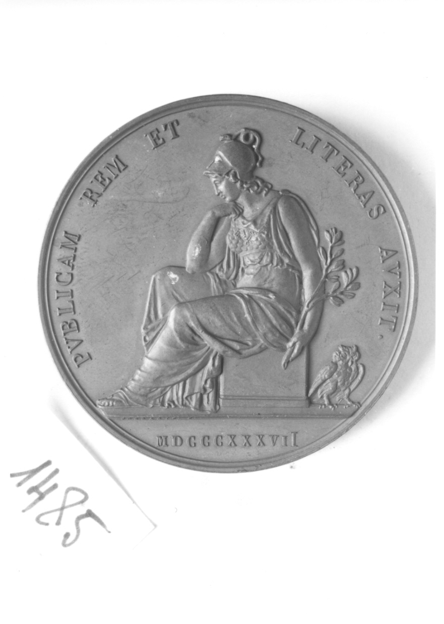 - ISCRIZIONI verso - PUBLICAM REM ET LITERAS AUXIT./ (in esergo) MDCCCXXXVII - lettere capitali - a penna - latino