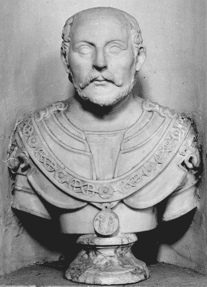 Ritratto a mezzo busto di Gaspare Porporato in abbigliamento militare e con collare e medaglione raffigurante l'Annunciazione a Maria