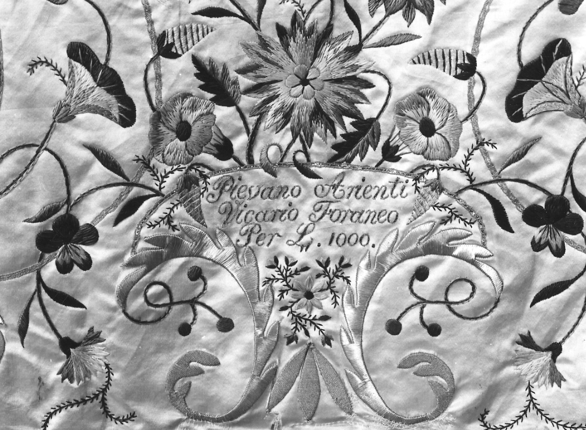 - ISCRIZIONI inbasso, al centro - Pievano Arienti / Vicario Foraneo / Per L. 1000 - corsivo - a punti -