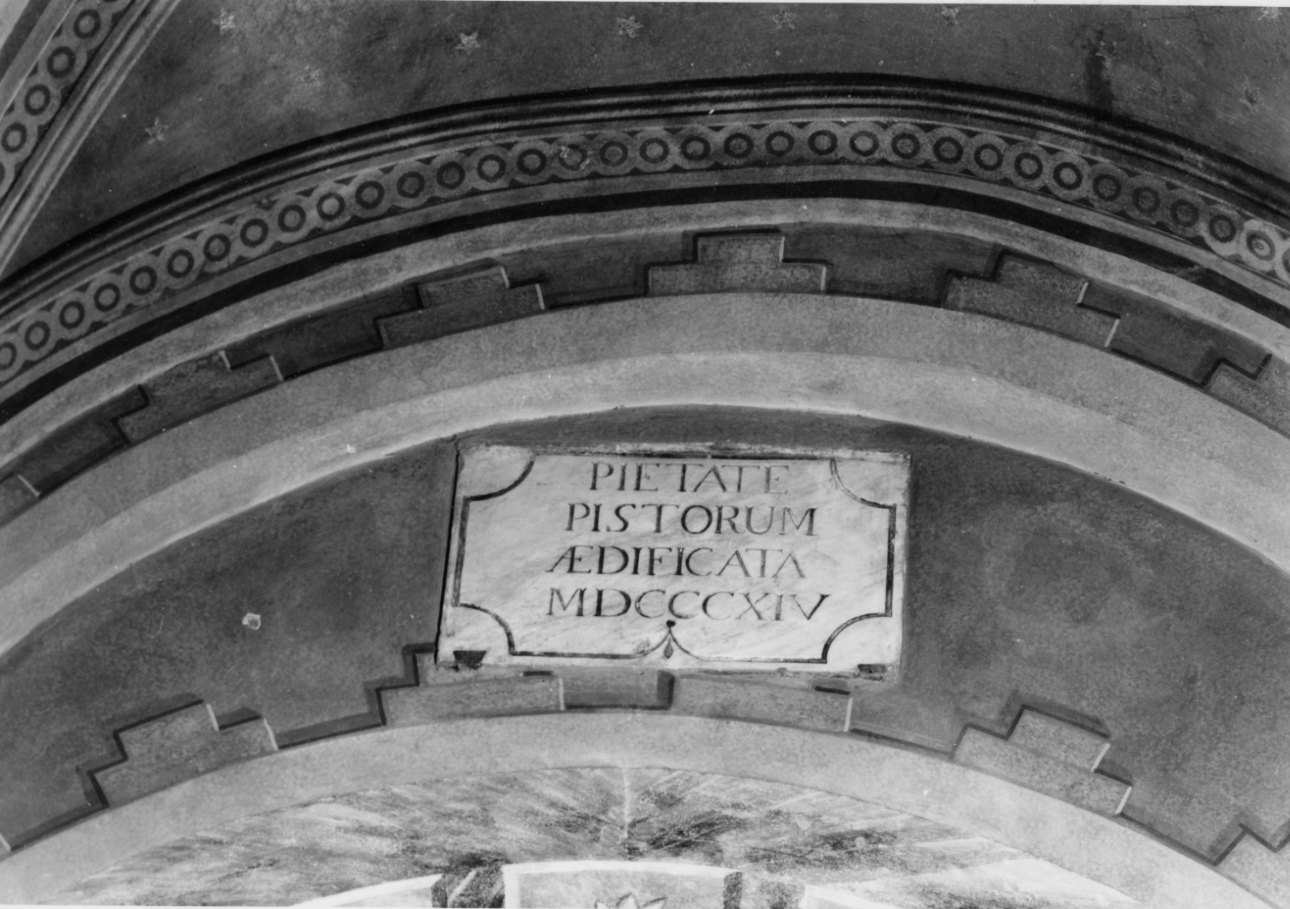 - ISCRIZIONI al centro - PIETATE PISTORUM AEDIFICATA MDCCCXIV - lettere capitali -