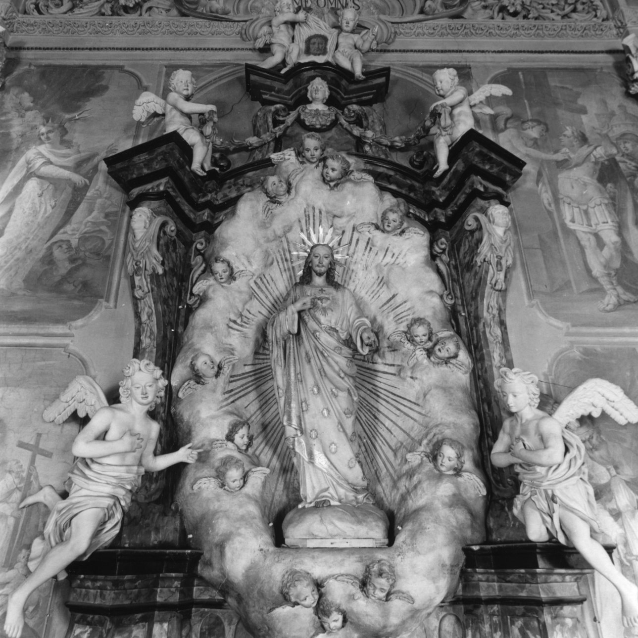 - NOTIZIE STORICO CRITICHE L'ancona in muratura è databile all'ultimo quarto del 1700 (l'altare maggiore è del 1785), mentre la mandorla in stucco, a forma di nuvola, è certamente più tarda (seconda metà del 1800) come si evince dalla scritta in basso a destra