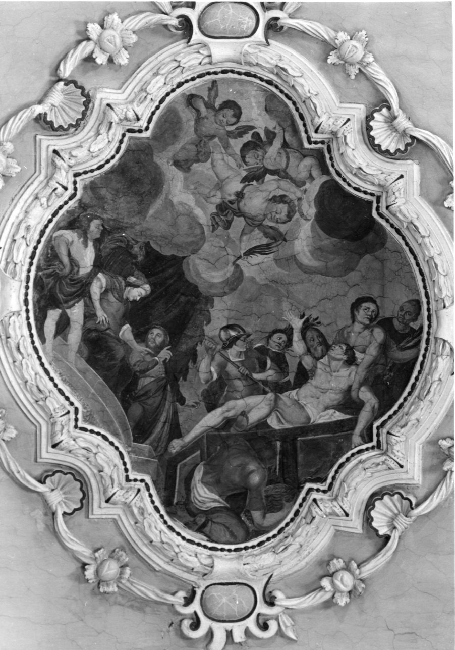 Personaggi: San Lorenzo. Figure: carnefici; figure maschili; angeli. Abbigliamento. Strumenti del martirio: graticola
