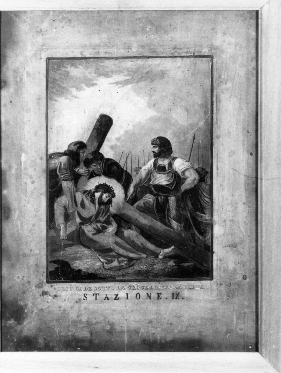 - ISCRIZIONI al di sotto del soggetto - GESU' CADE SOTTO LA CROCE LA TERZA VOLTA/ STAZIONE. IX - lettere capitali -
