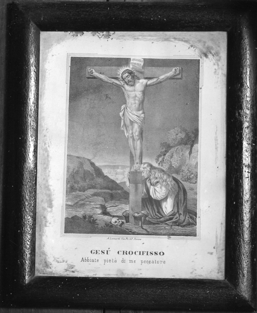 - ISCRIZIONI in basso al centro - GESU' CROCIFISSO/ ABBIATE PIETA' DI ME PECCATORE - corsivo -