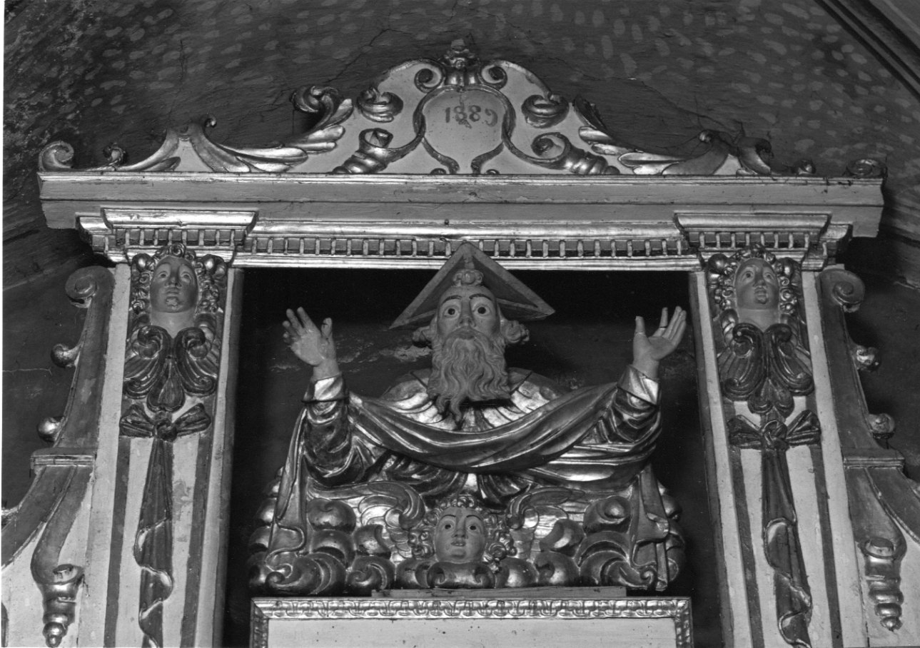Personaggi: Dio Padre a mezzo busto. Attributi: (Dio Padre) aureola triangolare; barba. Abbigliamento religioso
