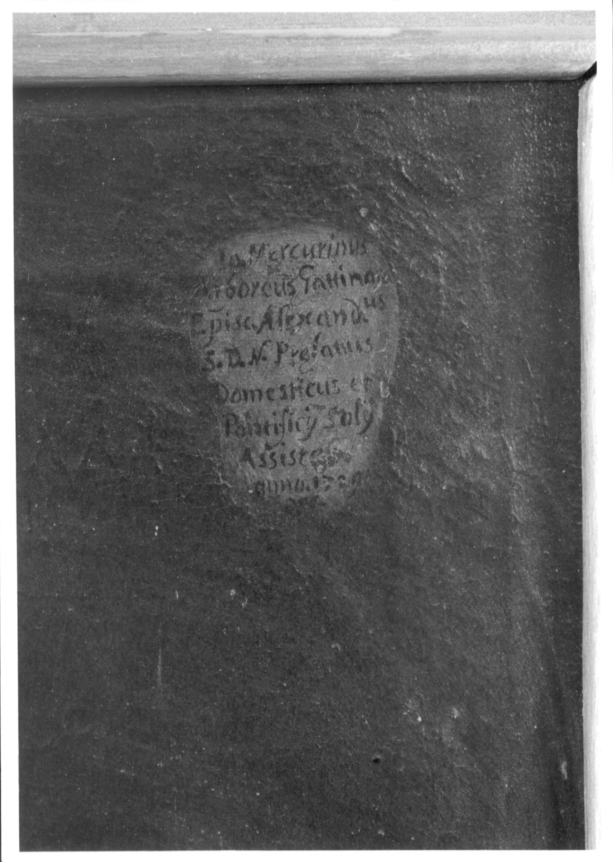 - ISCRIZIONI in alto adestra - Io. Mercurinus Arboreus Gattinara Episc. Alexand. iis S.D. N. Prelatus Domesticus et Pontificii Solii Assiste Anno 1729 -