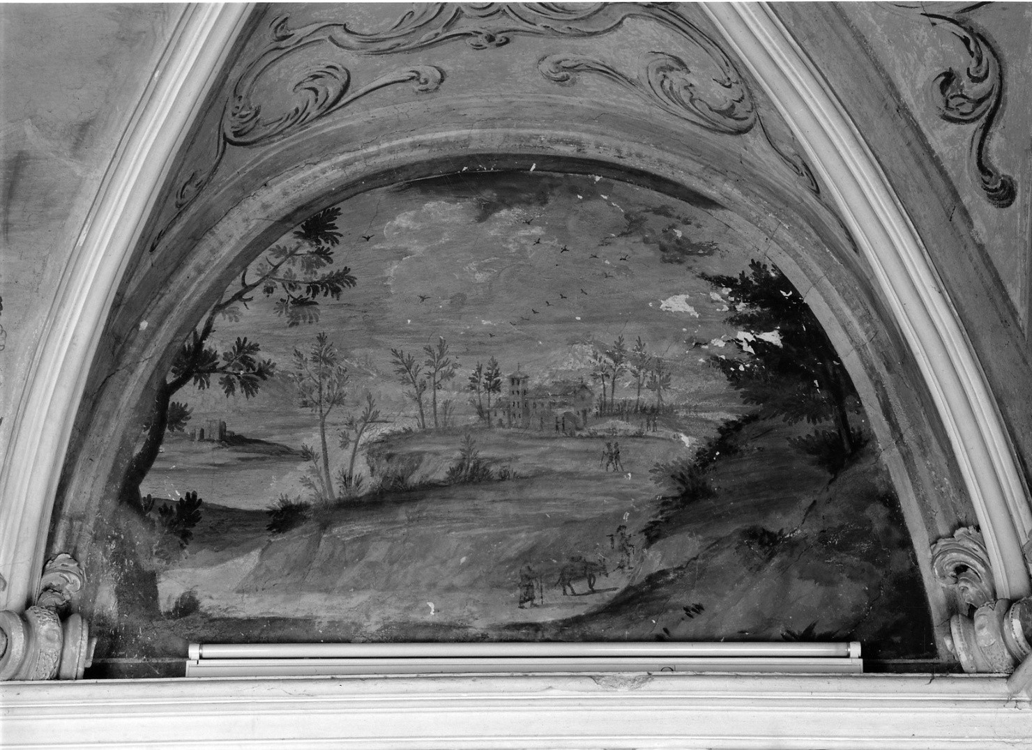 - NOTIZIE STORICO CRITICHE I dipinti raffiguranti paesaggi, ornano le lunette e i fondi delle cornici a stucco della pareti, che includevano dipinti su tela (andati dispersi) sicuramente coevi alla decorazione a stucco (secc. XVII/XVIII). I paesaggi, dipinti direttamente sul vecchio intonaco, sembrano databili alla seconda metà del Settecento e non immediatamente successivi allo smantellamento dell'apparato ornamentale delle pareti. Forse la committenza degli affreschi è attribuibile ai Padri Serviti