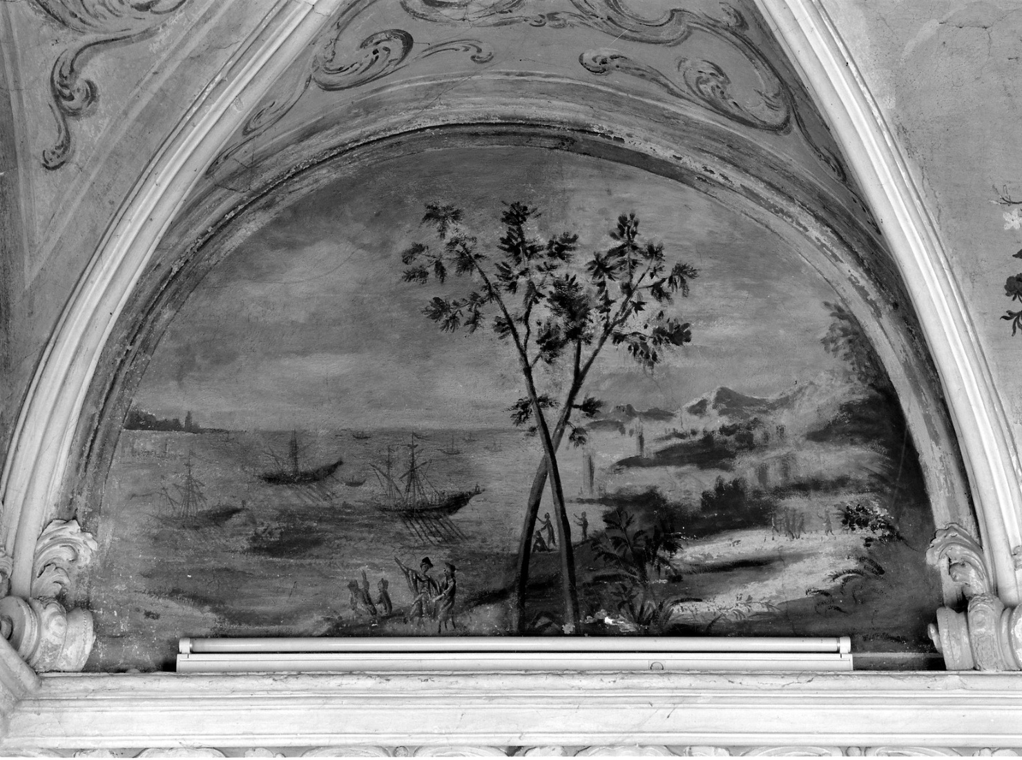 - NOTIZIE STORICO CRITICHE I dipinti raffiguranti paesaggi, ornano le lunette e i fondi delle cornici a stucco della pareti, che includevano dipinti su tela (andati dispersi) sicuramente coevi alla decorazione a stucco (secc. XVII/XVIII). I paesaggi, dipinti direttamente sul vecchio intonaco, sembrano databili alla seconda metà del Settecento e non immediatamente successivi allo smantellamento dell'apparato ornamentale delle pareti. Forse la committenza degli affreschi è attribuibile ai Padri Serviti