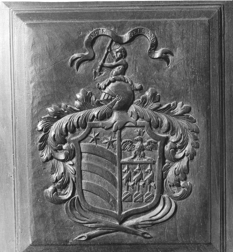 - ISCRIZIONI entro cartiglio, sullo stemma - IVSTE BELLANDVM - lettere capitali - a incisione - latino