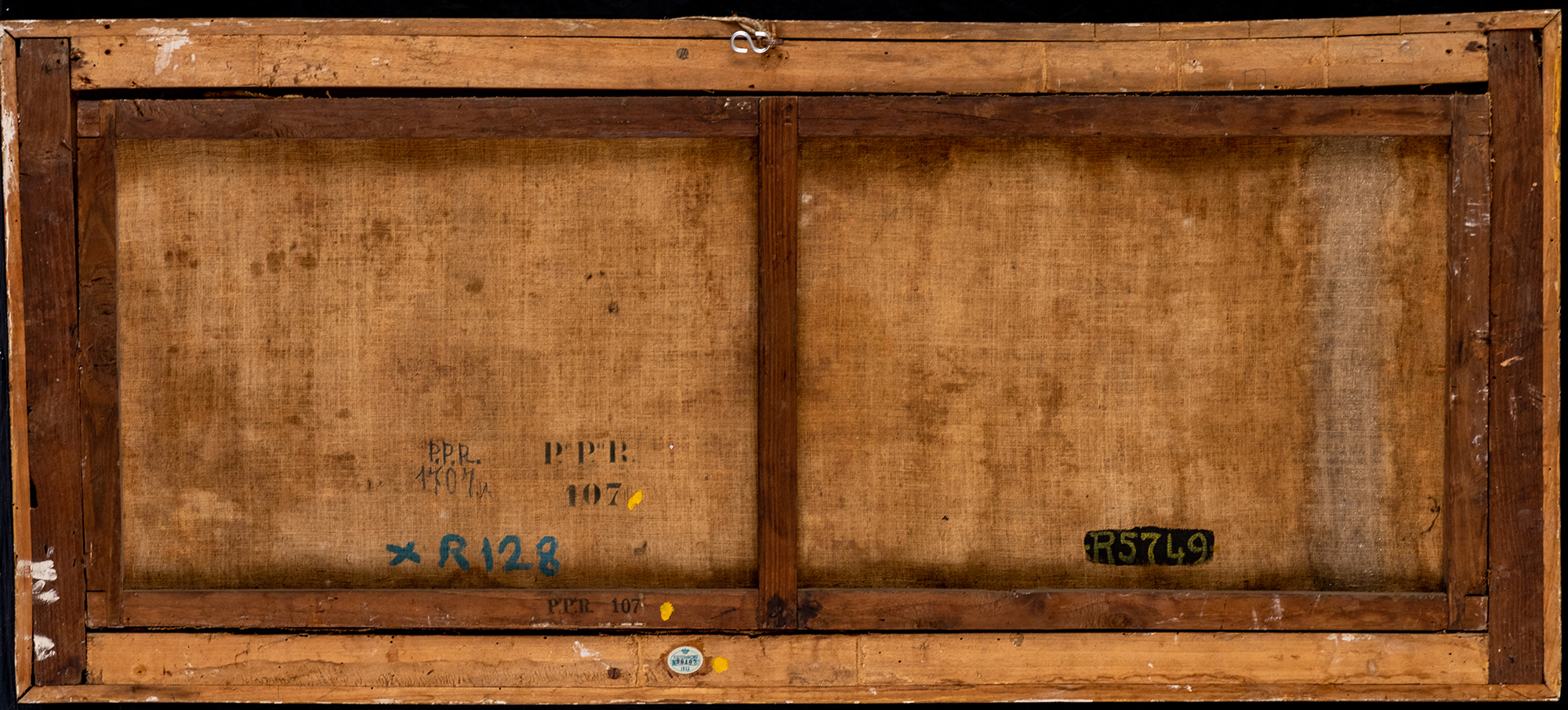 - ISCRIZIONI sul retro della tela, in giallo - R. 5749 - numeri arabi - a impressione -