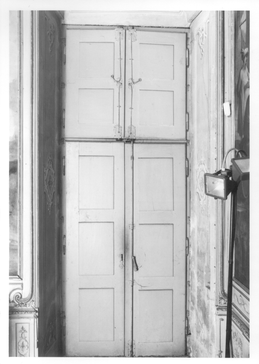 - NOTIZIE STORICO CRITICHE APPARTAMENTO DEL DUCA DI SAVOIA, DETTO DEL RE CARLO FELICE: : PRIMA ANTICAMERA: Si devono a Giovanni Battista Alberoni (Modena? ca. 1700 - Torino ca. 1785) e Giovanni Franco Cassini (notizie intorno alla metà del XVIII secolo) gli affreschi della volta, risalenti al 1754. Dello stesso anno sono i lambriggi (zoccolo) e le imposte delle finestre a finti stucchi e nature morte di Francesco Antoniani (Milano, 1700, circa - Torino 1775). L'affresco dell'ovato centrale della volta, parimenti del 1754, è di Giuseppe Salega (Torino?, notizie dal 1750 - Torino, 1782): vi sono raffigurati Giochi di putti. I pannelli delle porte volanti sono di Giovanni Battista Alberoni, databili ipoteticamente al 1754. I cartoni preparatori per arazzi ad olio su tela di Francesco Antoniani, raffiguranti Marine e Boscarecce, risalgono al 1743-44 ca. Le due mostre di camino, in marmo d'Ars, forse realizzate su progetto di Giovanni Tommaso Prunotto (Guarene, ca. 1700 - Torino?, ca. 1771) sono del 1770