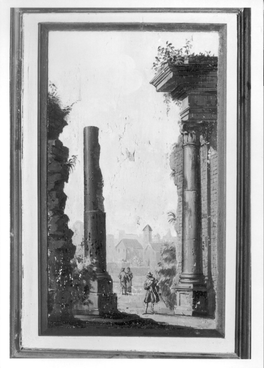 Lo scuro si compone di due ante ed è costituito da dieci pannelli dipinti