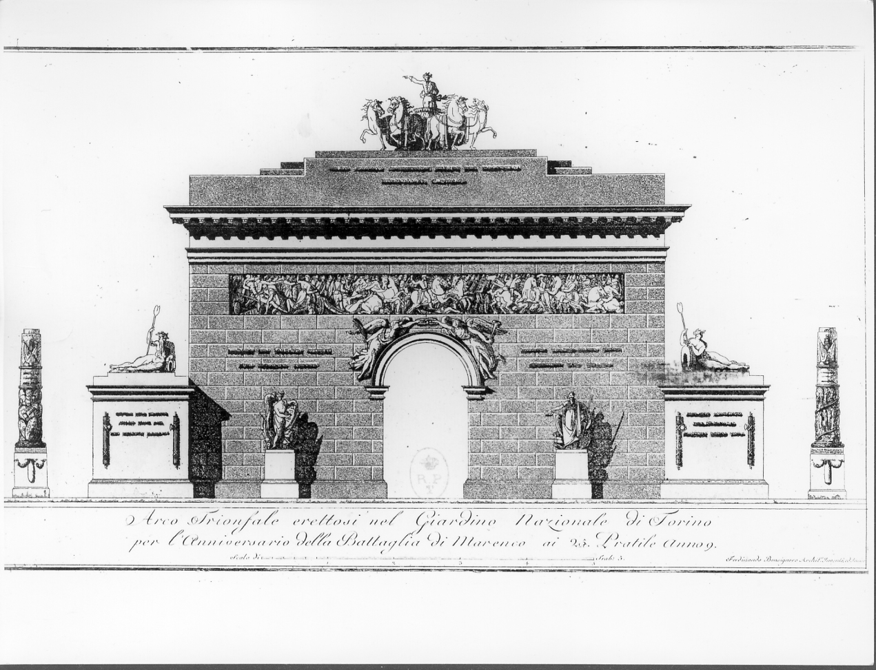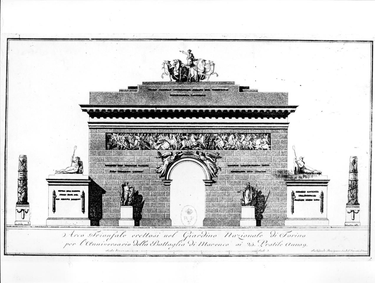 Arco Trionfale erettosi nel Giardino Nazionale di Torino per l'Anniversario della Battaglia di Marenco. Arco trionfale eretto a Torino per la vittoria di Marengo