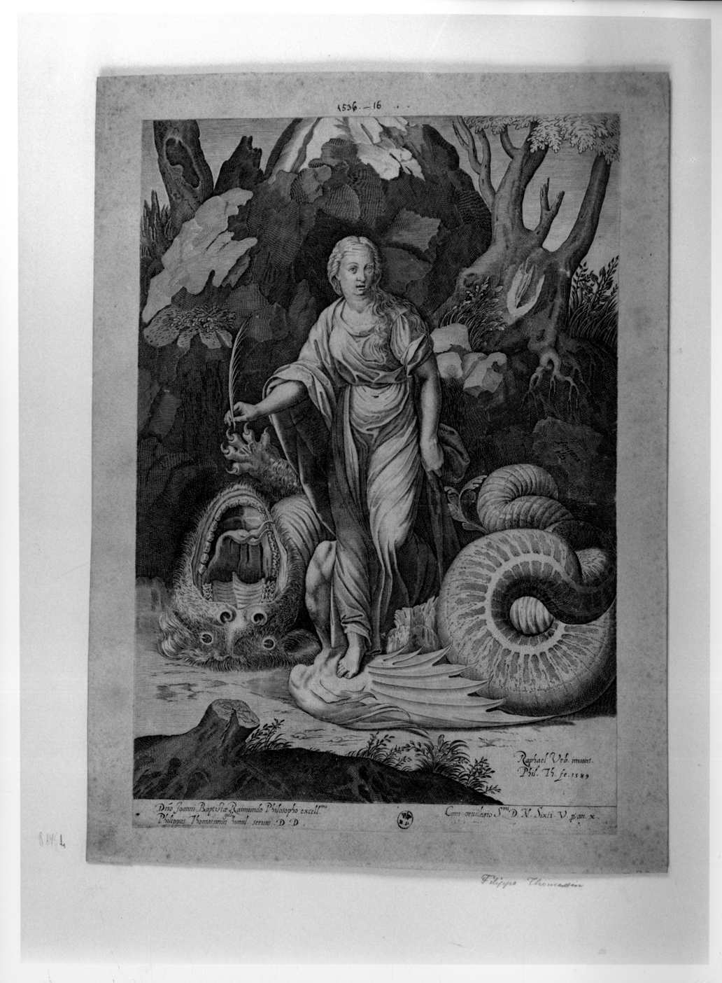 - ISCRIZIONI in basso a sinistra della stampa, sul foglio dell'album - R. 1764 - Thomassin Philippe - corsivo - a matita - latino